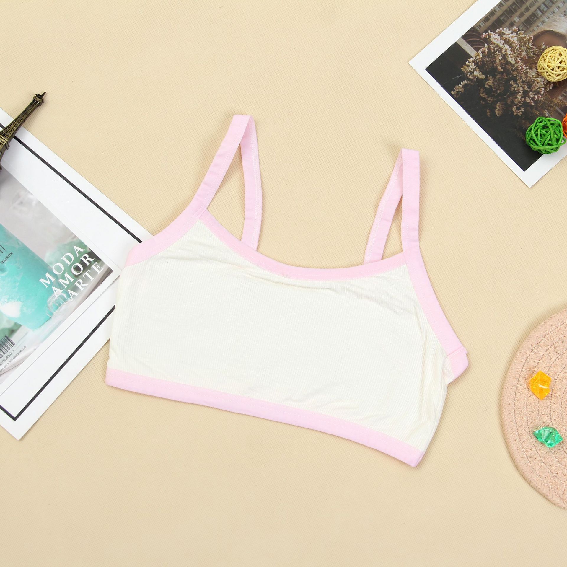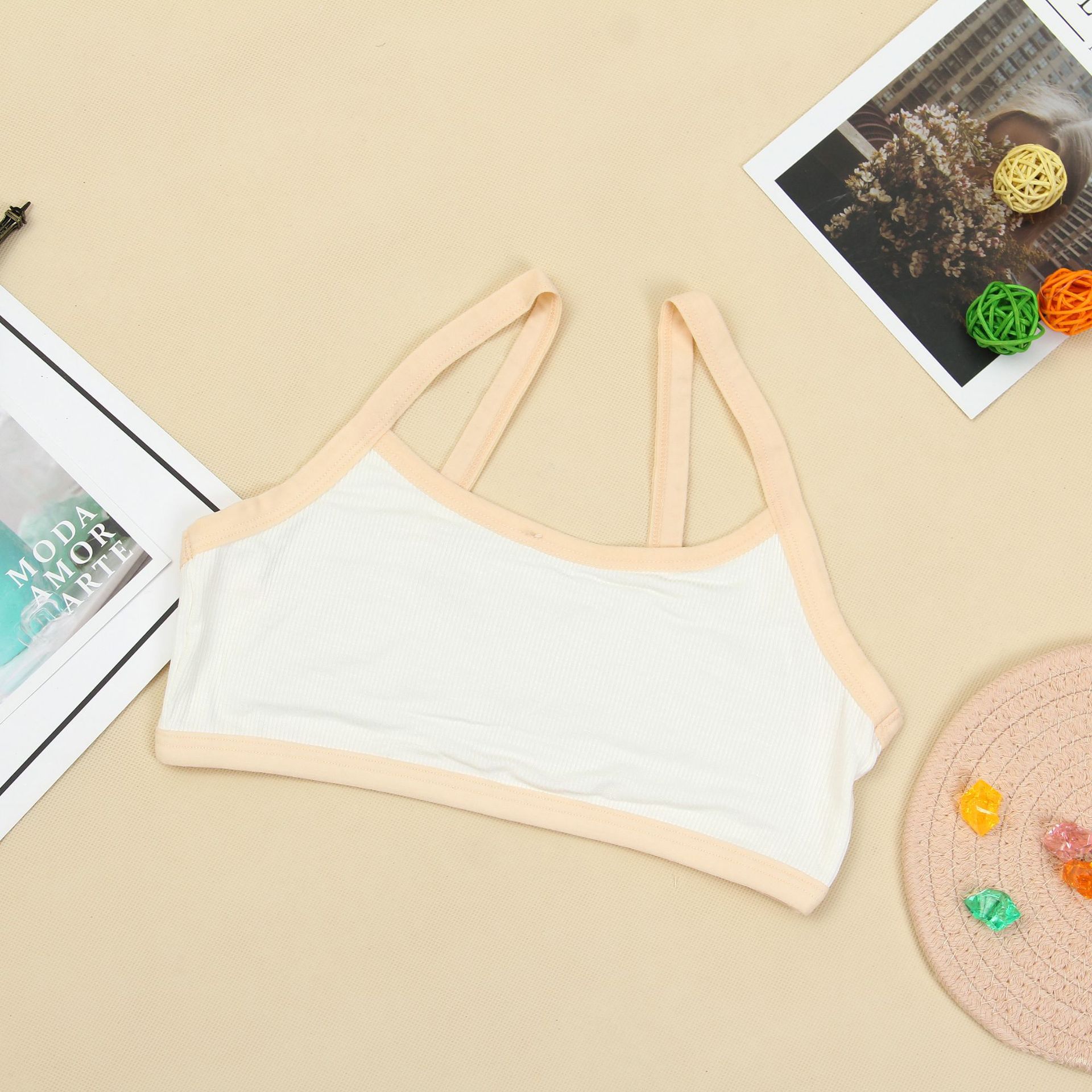 Jianshuyan 여자 속옷 면 노 스틸 링 스포츠 브라 중학교 고등학교 학생 개발 기간 파인 벨트 조끼스토어 가기