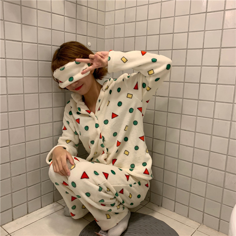 폭발 크레용 작은 새 잠옷 여성의 겨울 패딩 플란넬 기하학적 세트 산호 양털 아이 마스크 해외 무역 도매스토어 가기