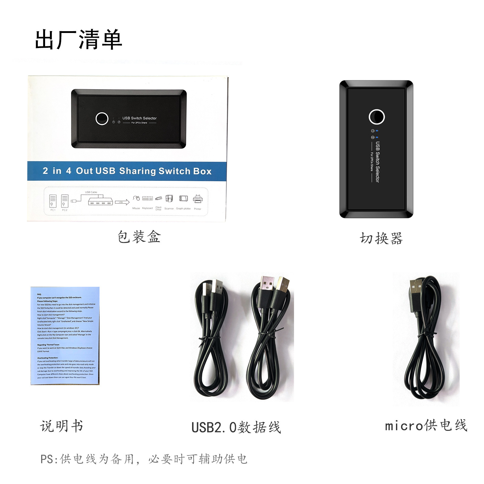 국경 간 공급 usb 멀티 인터페이스 2 인 4 아웃 스플리터 프린터 공유 장치 2 대의 컴퓨터 공유 전환