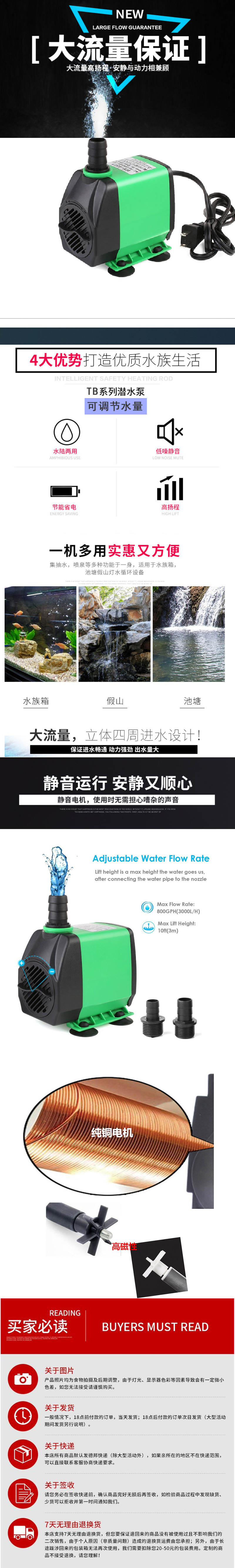 어항 잠수정 펌프 다기능 수족관 펌핑 물 순환 필터 음소거 물고기 연못 바위 분수 잠수정 펌프스토어 가기