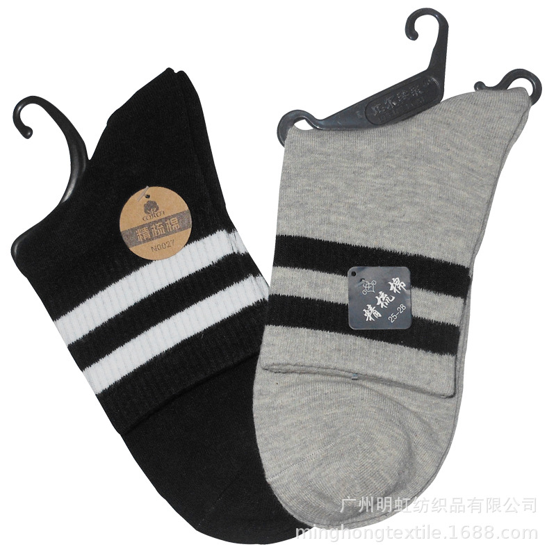 • 现货包装方式:每双中筒运动棉袜包一张小纸卡再套一个人字挂钩,12双中筒运动棉袜装入一个中包胶袋