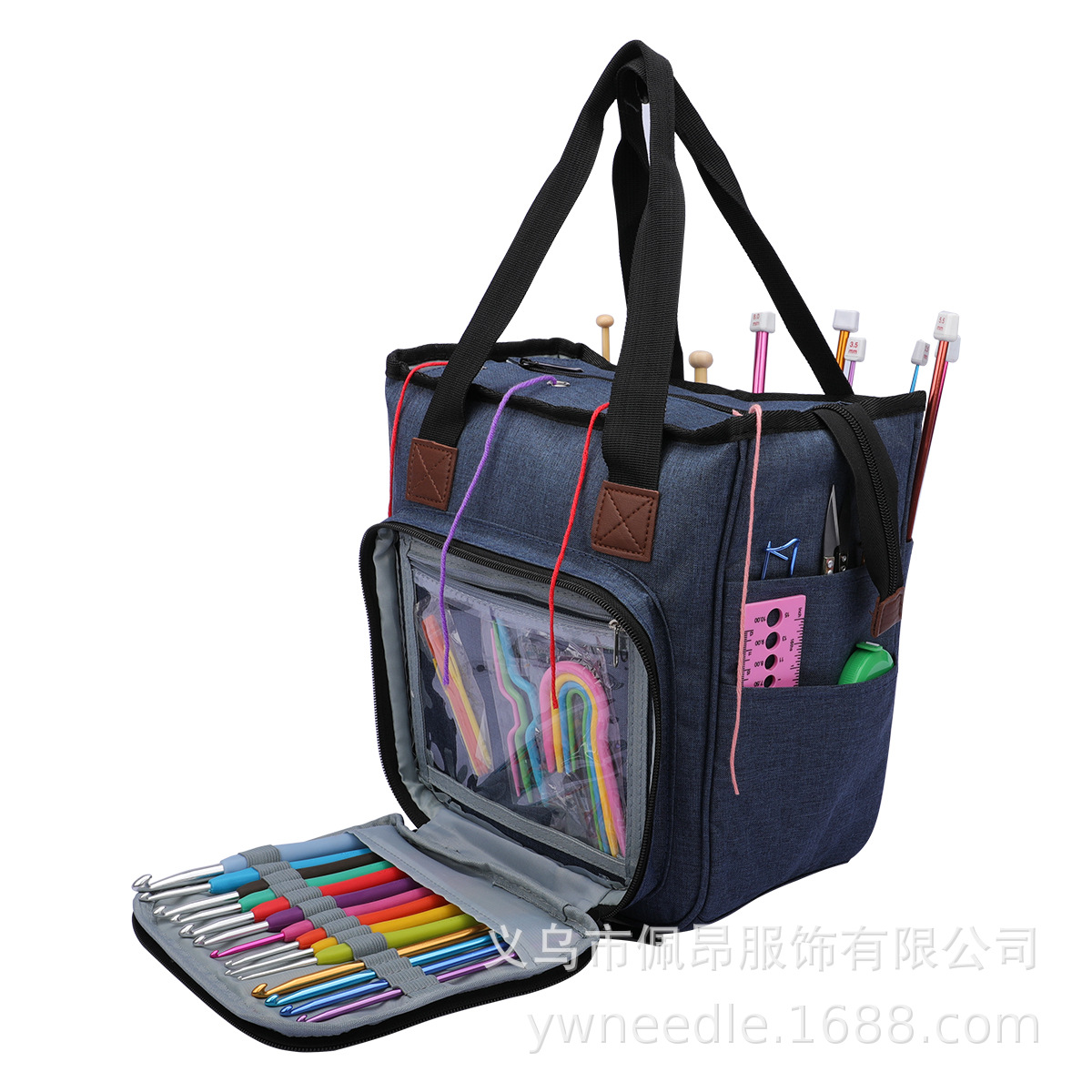 국경 간 인기 판매 가정용 짠 보관 도구 보라색 옥스포드 천 핸드백 스틱 바늘 보관 울 보관 가방스토어 가기