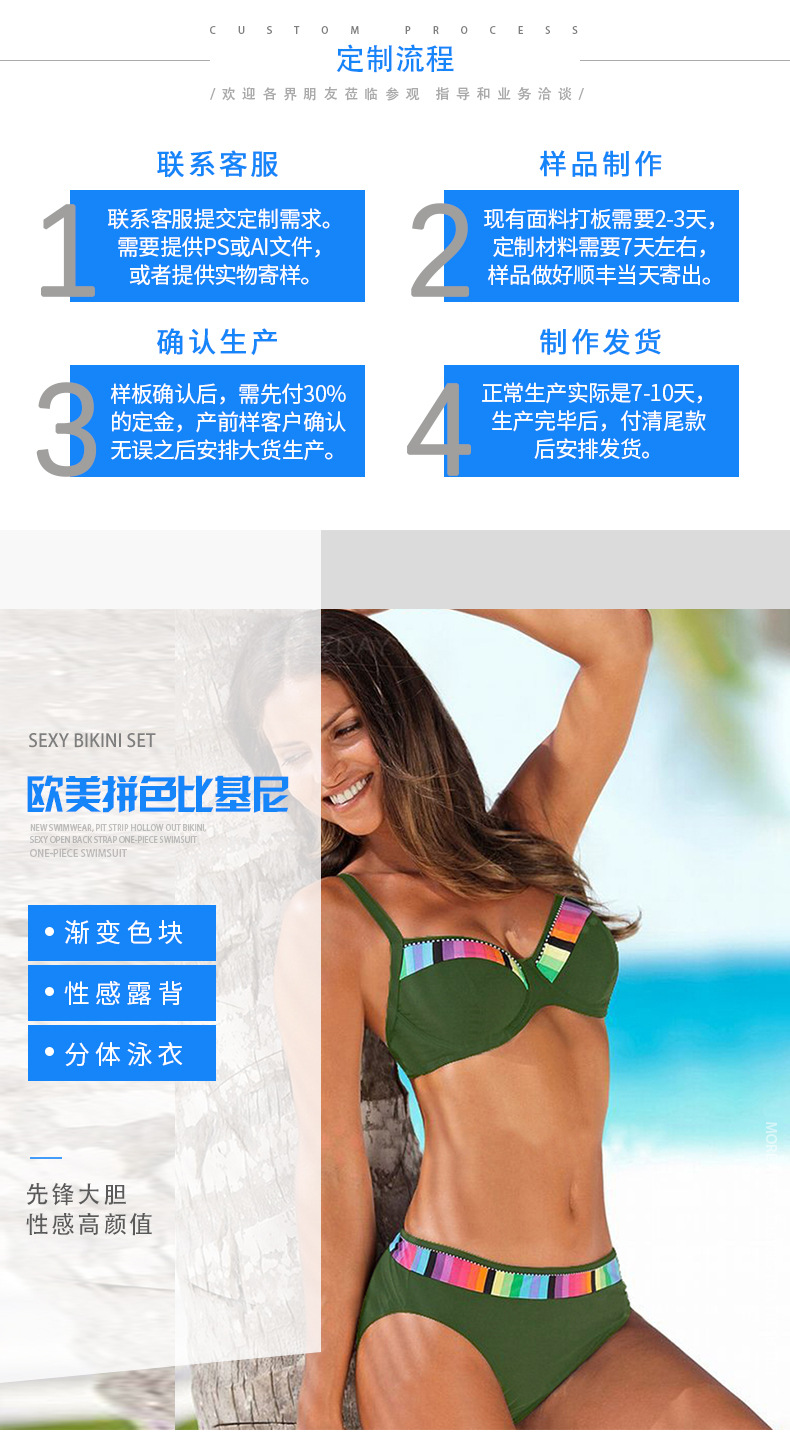 섹시한 투피스 비키니 여성 유럽 및 미국 스타일 배색 그라데이션 수영복 도매 1011