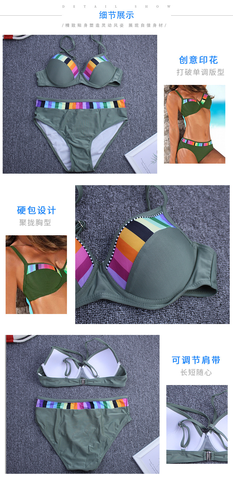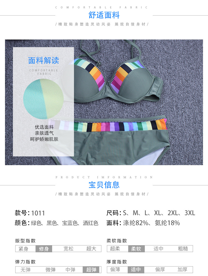 섹시한 투피스 비키니 여성 유럽 및 미국 스타일 배색 그라데이션 수영복 도매 1011스토어 가기
