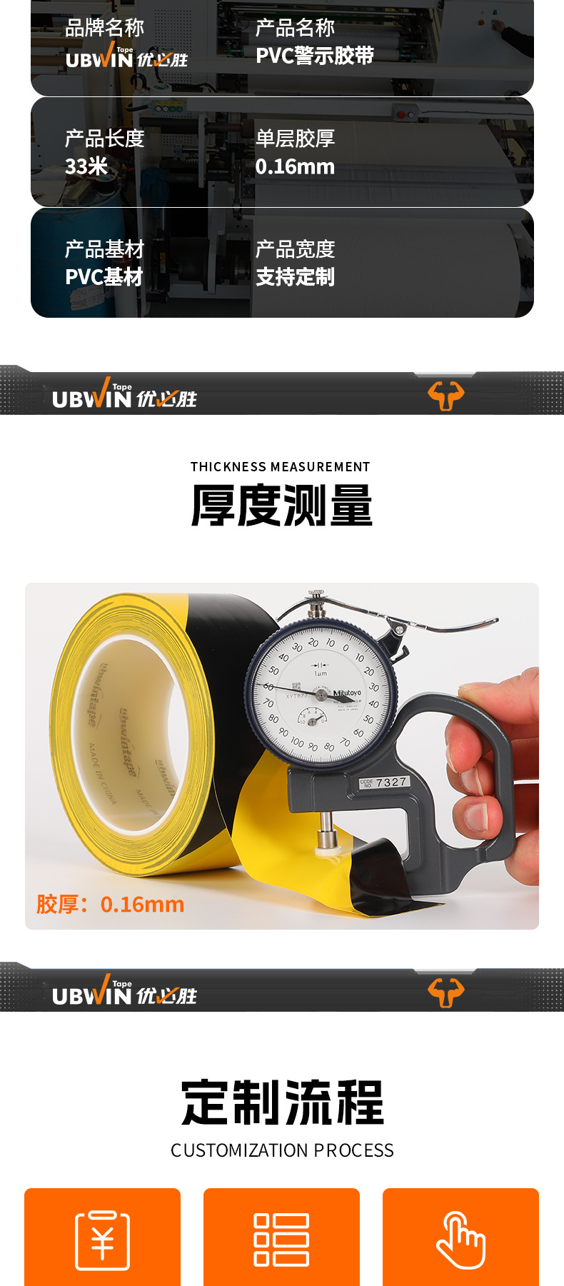 UBS471 경고 테이프 PVC 검은 색과 노란색 이중 색상 경고 지상 분할 먼지없는 작업장 6S 포지셔닝 바닥 테이프