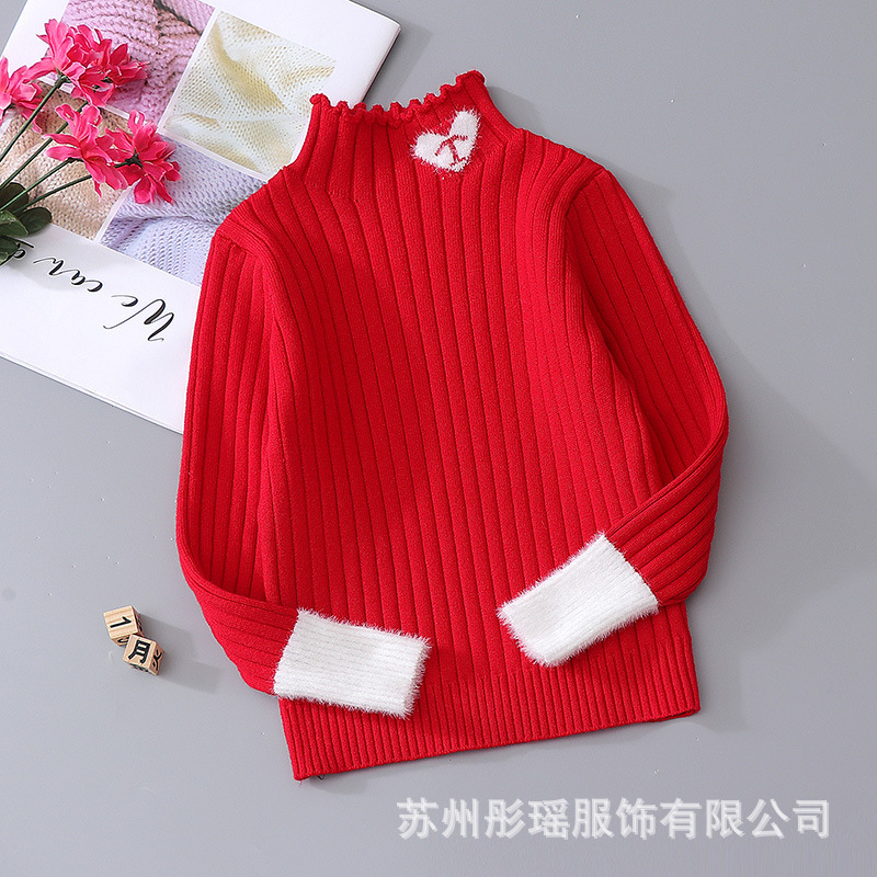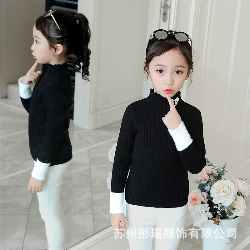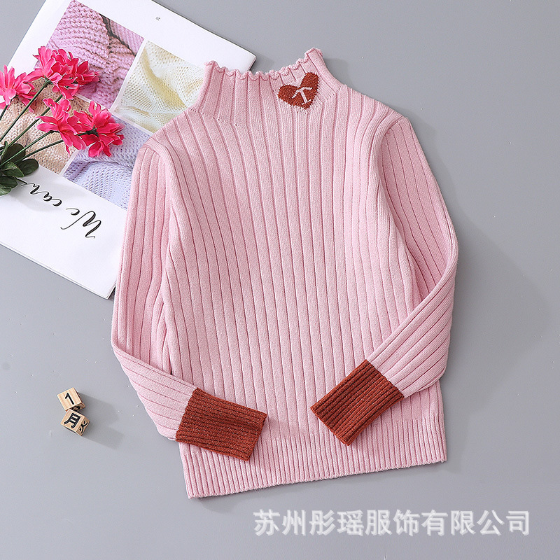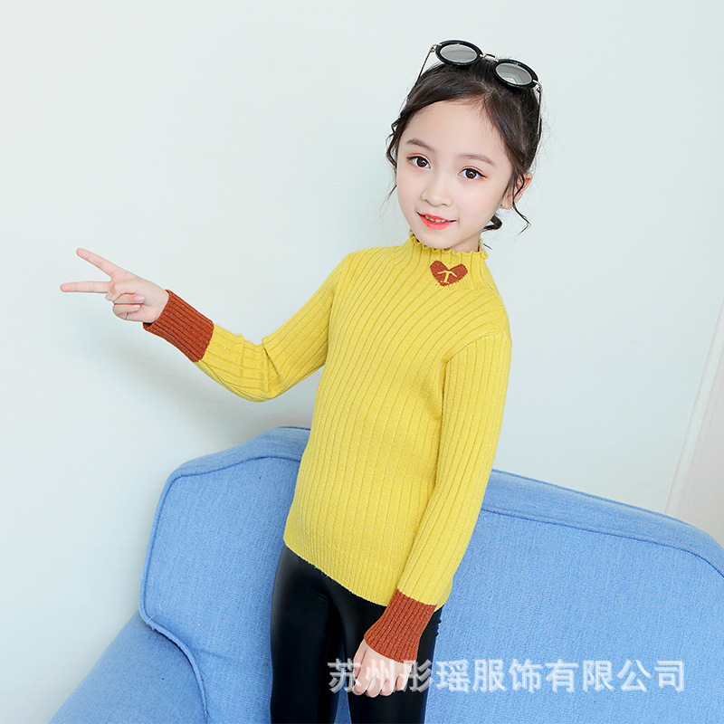 여아 스웨터 어린이 풀오버 스웨터 봄과 가을 새로운 서양식 가을 옷 어린 소녀의 순면 울 니트 베이스 셔츠
