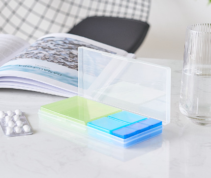 일본 수입 YAMADA 미니 혼합 색 약 상자 이중 밀폐 구획 약 상자 휴대용 알약 보관 상자 중