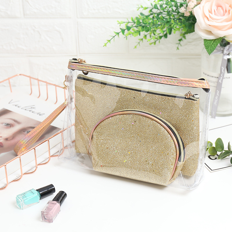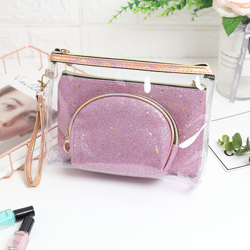 여름 새로운 화장품 가방 세트 PVC 투명 세 조각 대용량 여행 저장 가방 세척 가방스토어 가기