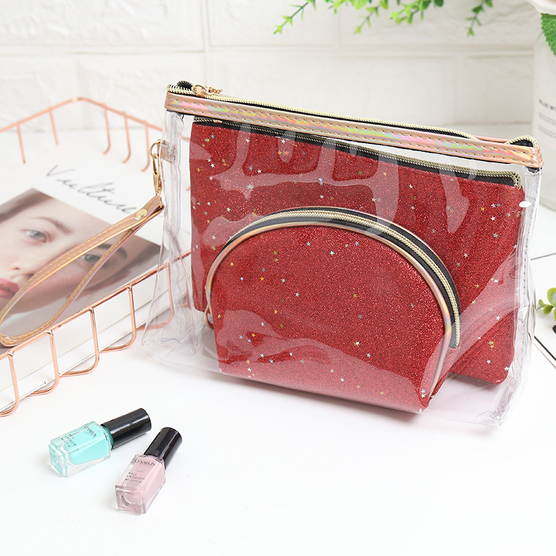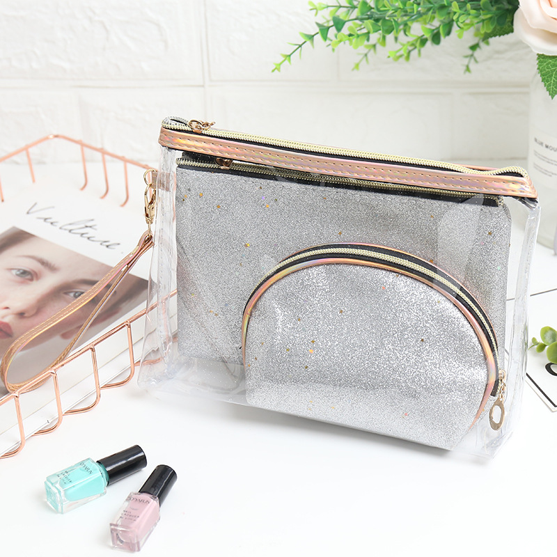 여름 새로운 화장품 가방 세트 PVC 투명 세 조각 대용량 여행 저장 가방 세척 가방