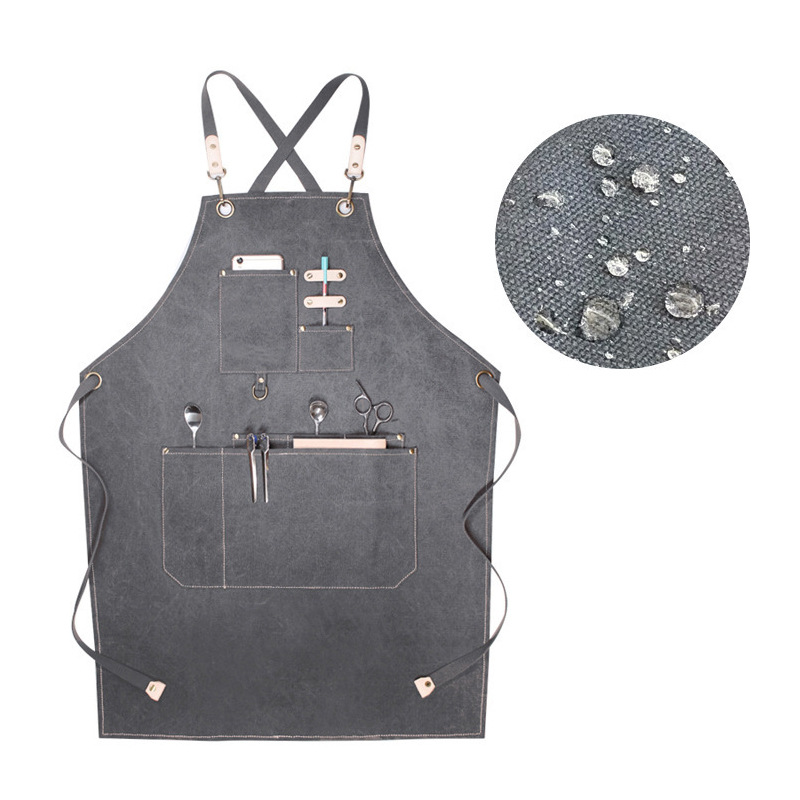 이발사 남자와 여자의 앞치마 게스트 주문 로고 우유 차 꽃 가게 다크 브라운 레스토랑 주방 패딩 캔버스 바지스토어 가기