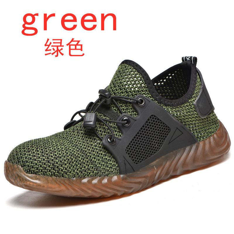 여름용 통기성 작업화, 플라이 니트 내마모성 고무 밑창, 가볍고 안전한 신발, 해외 직구, 충격 방지 및 관통 방지 작업화