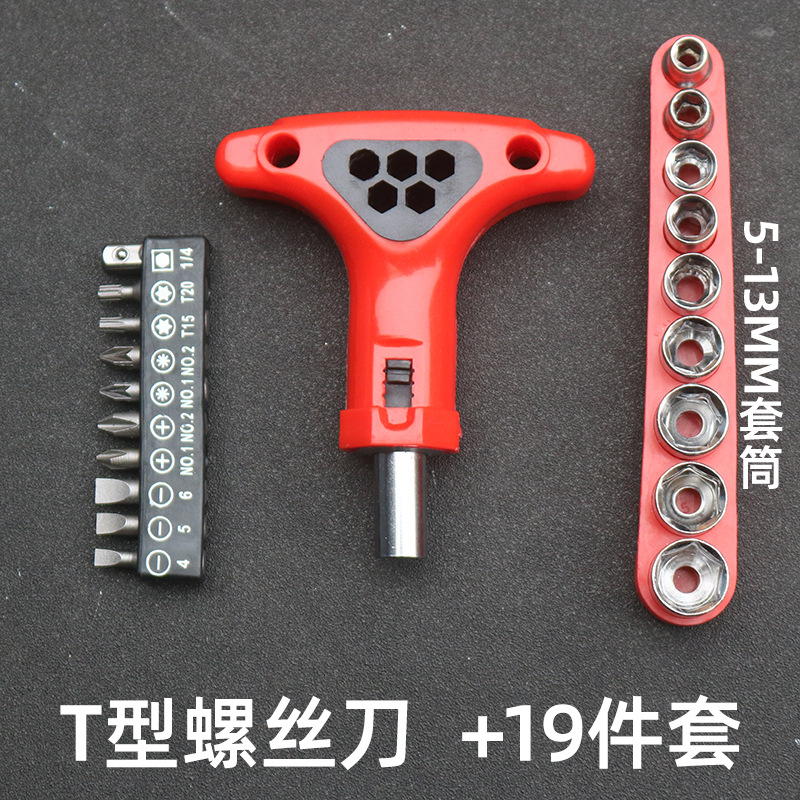 • T 핸들 래칫 드라이버 + 19 피스 세트