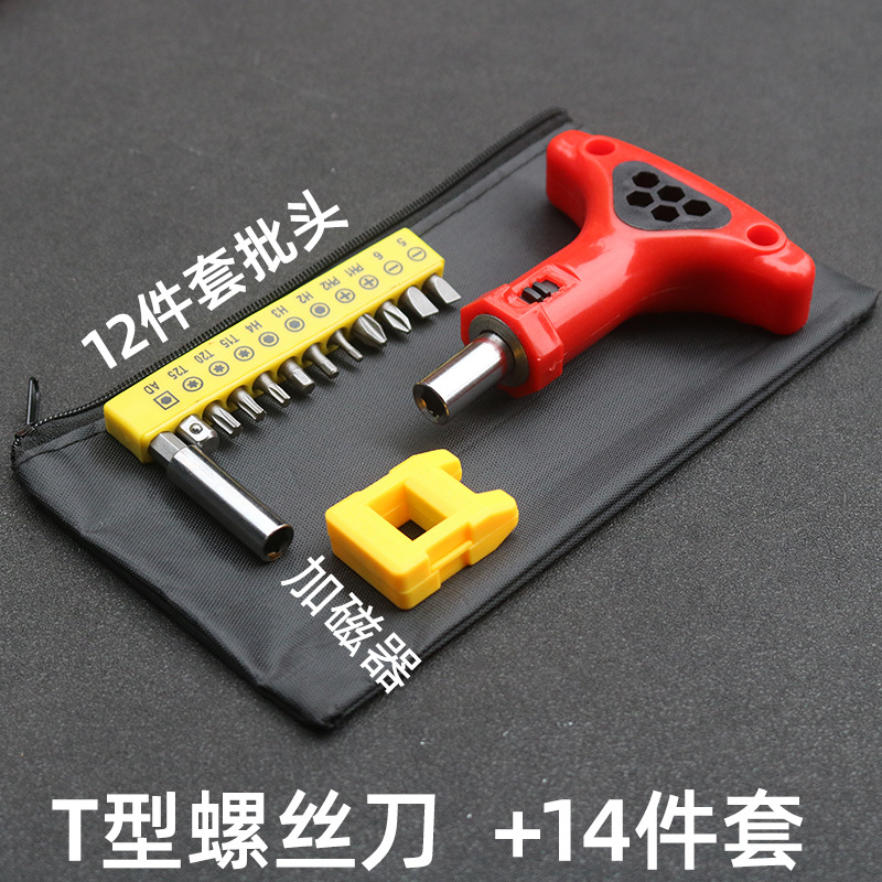 • T 핸들 래칫 드라이버 + 14 피스 세트