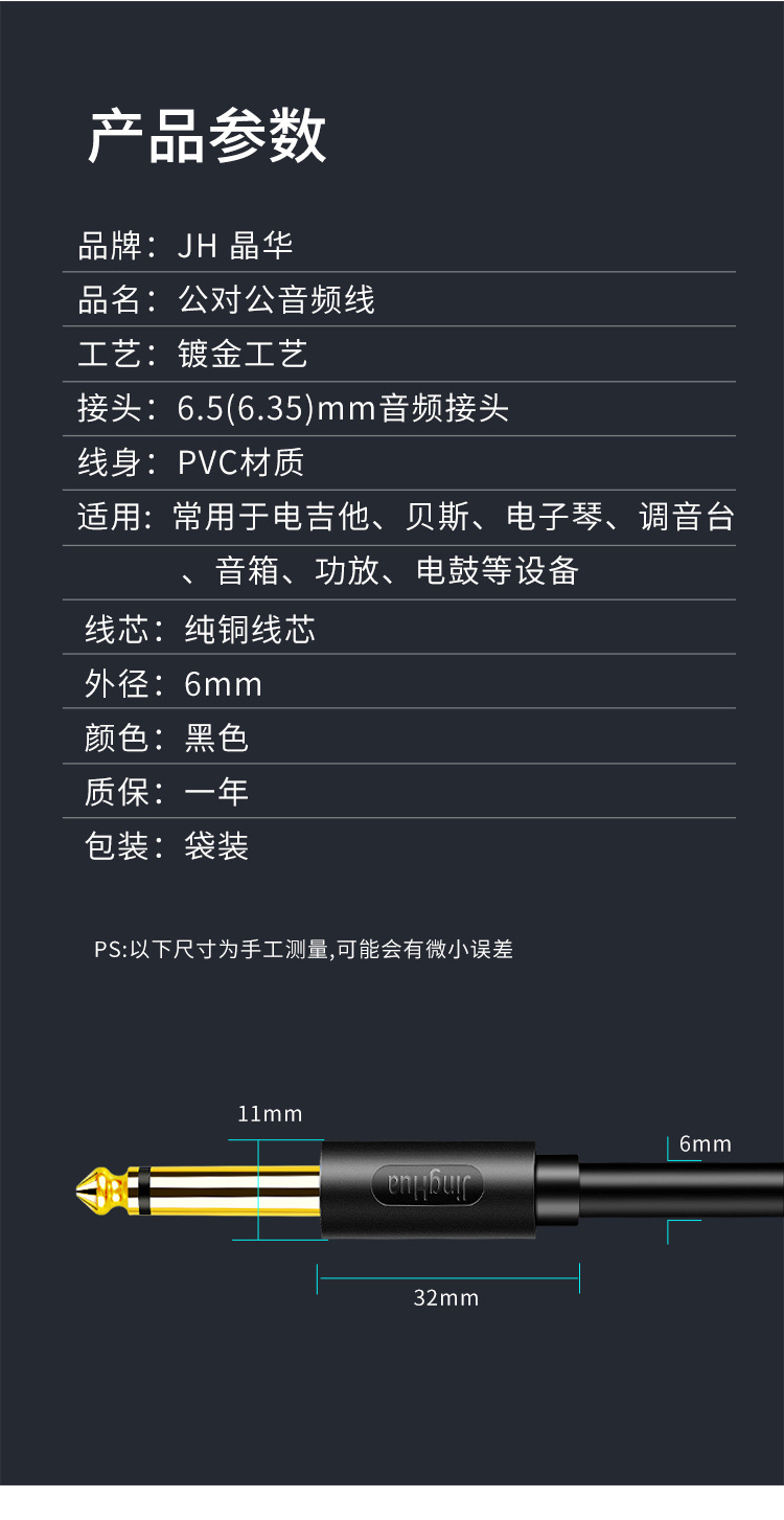 진화 6.5 오디오 라인 마이크 악기 튜닝 라인 전기 박스 기타베이스 스피커 6.35mm 기타 라인스토어 가기