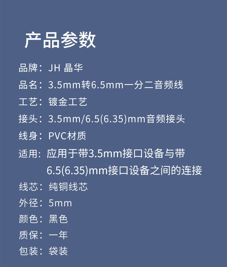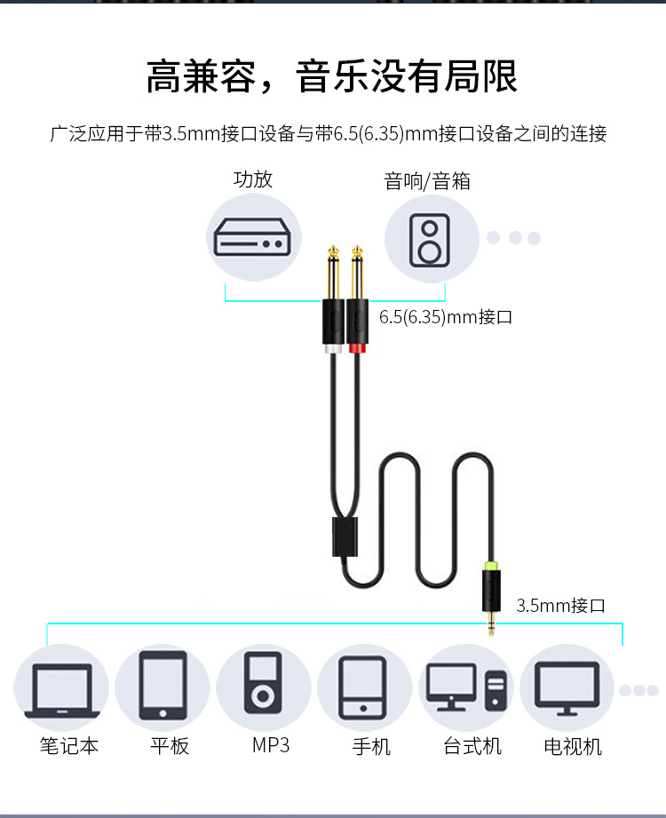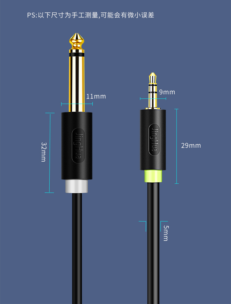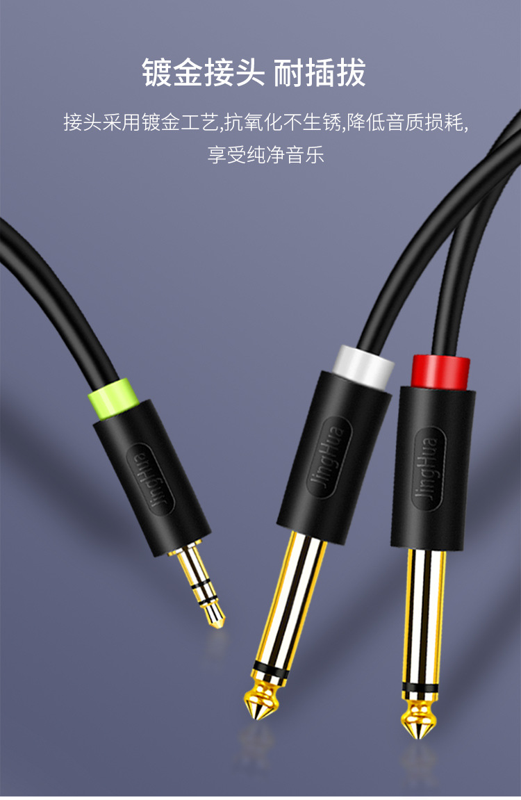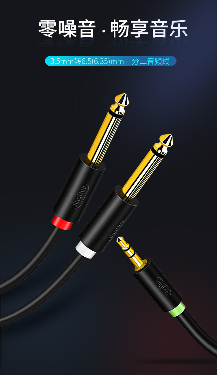 Jinghua 3.5-듀얼 6.5 오디오 케이블, 1-2 듀얼 채널 노트북 휴대폰 믹서, 베어 구리 와이어 코어