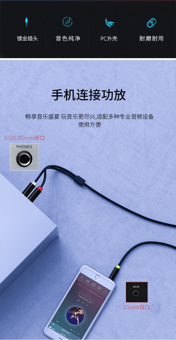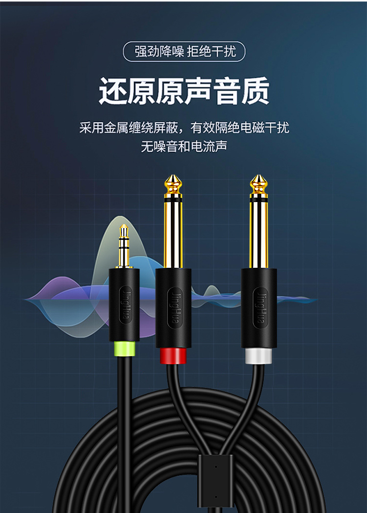 Jinghua 3.5-듀얼 6.5 오디오 케이블, 1-2 듀얼 채널 노트북 휴대폰 믹서, 베어 구리 와이어 코어스토어 가기