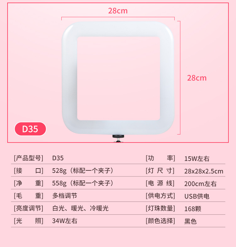 공장 직접 LED 사각형 채우기 빛 부드러운 빛 셀카 아름다움 라이브 3 기어 조정스토어 가기