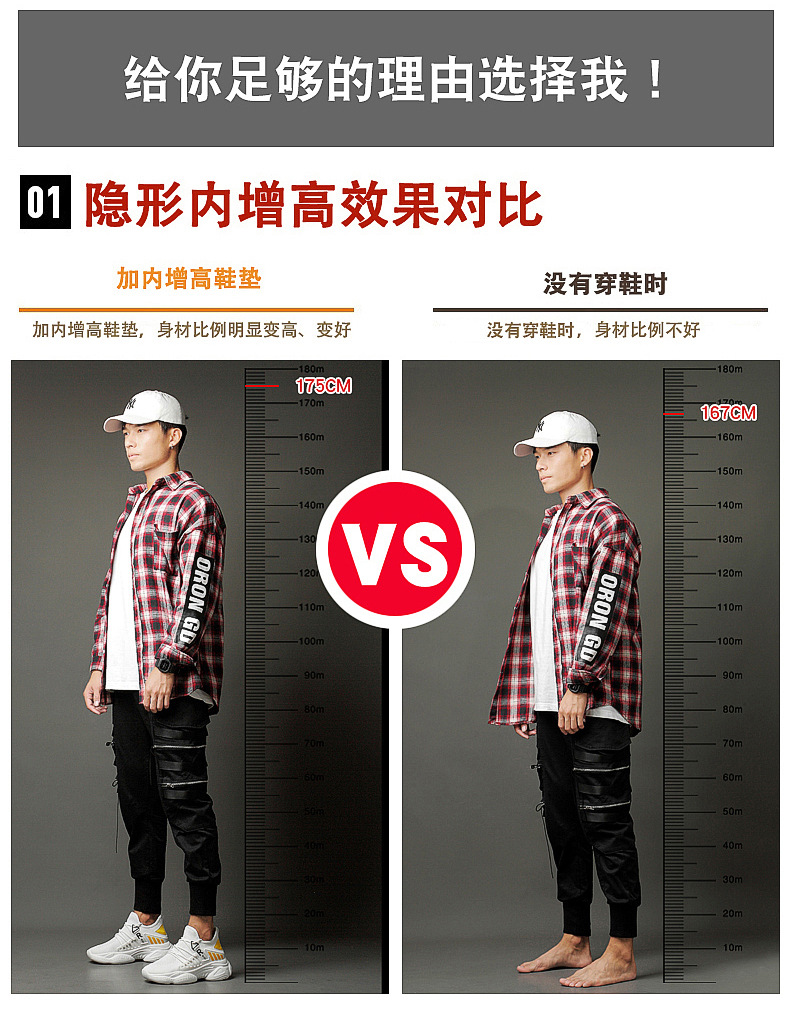 남자 신발 봄과 가을 트렌디 한 단층 신발 중공 4 면 탄성 메쉬 높이 8cm 캐주얼 스포츠 러닝화 한국 스타일스토어 가기