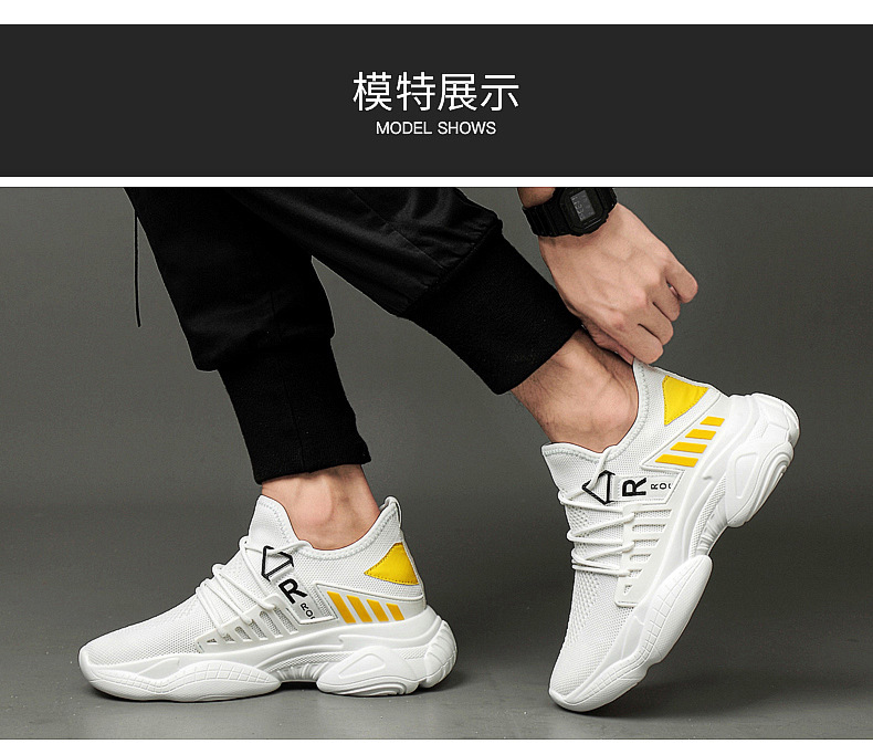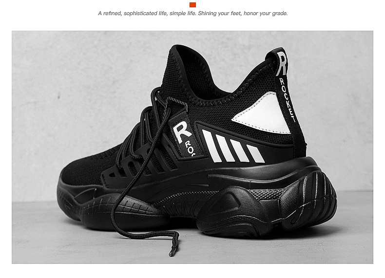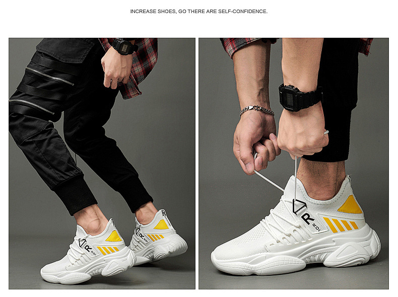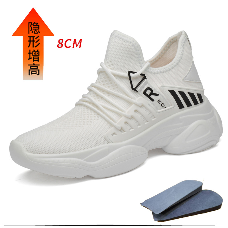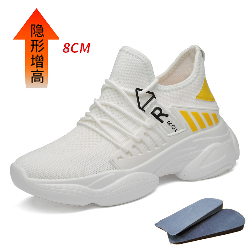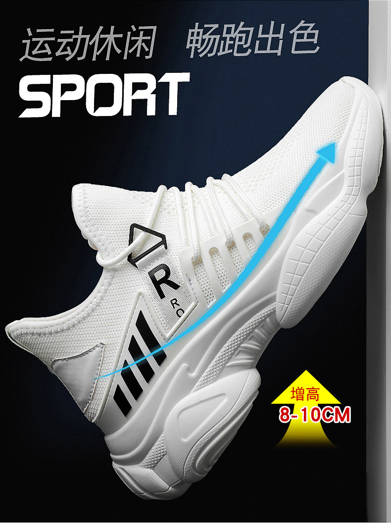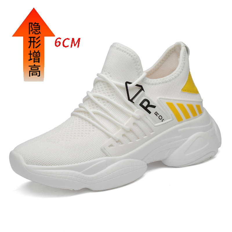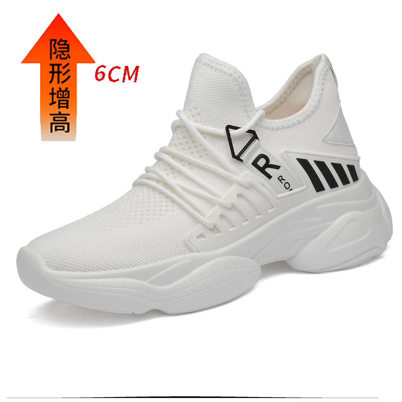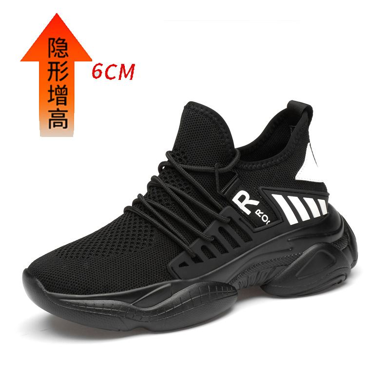 남자 신발 봄과 가을 트렌디 한 단층 신발 중공 4 면 탄성 메쉬 높이 8cm 캐주얼 스포츠 러닝화 한국 스타일