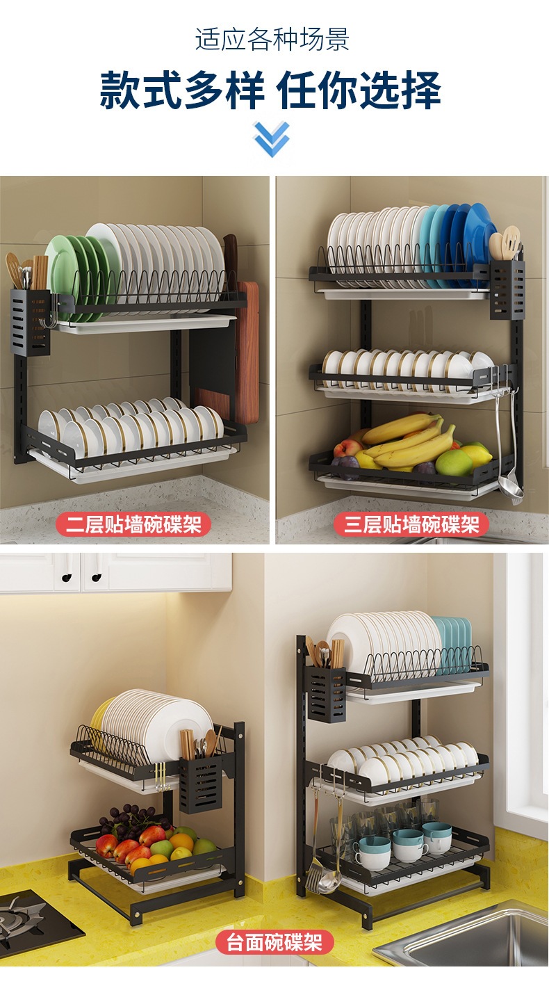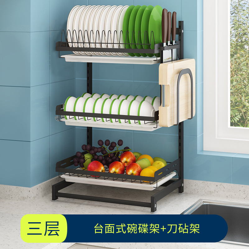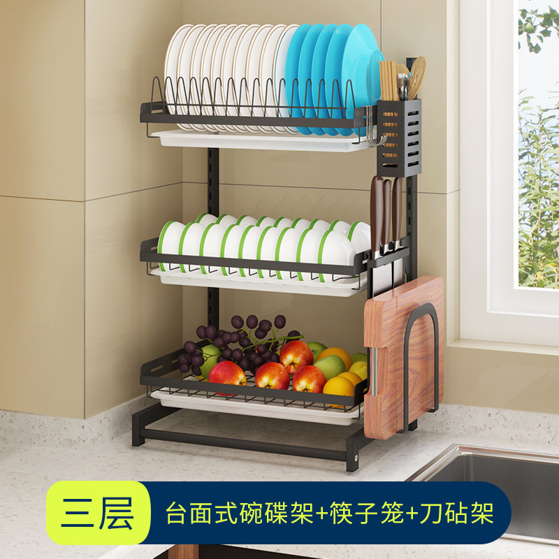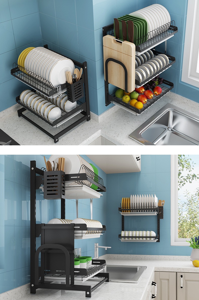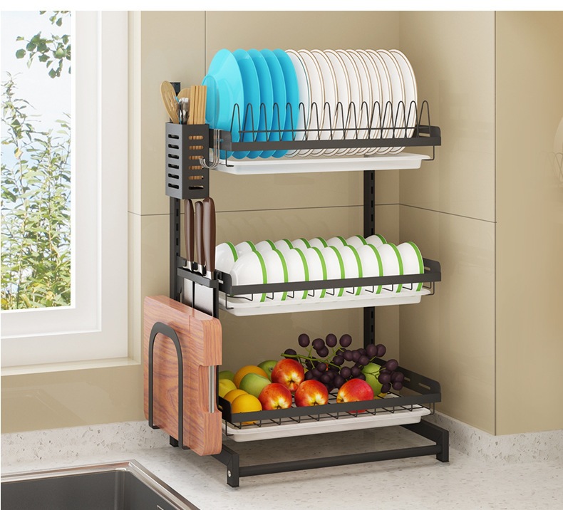 공장 직접 블랙 스테인레스 스틸 주방 접시 랙 요리 젓가락 칼 도마 도마 보관 랙스토어 가기