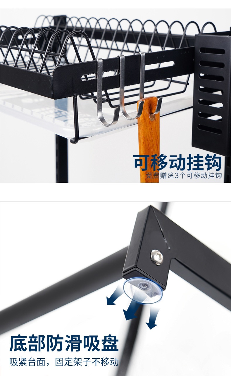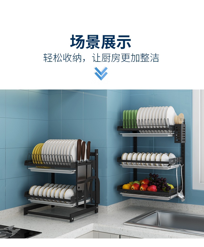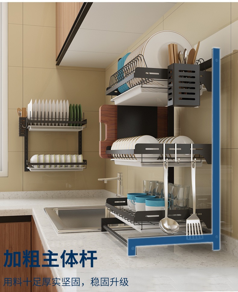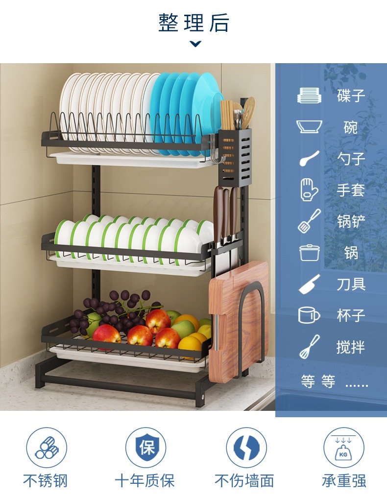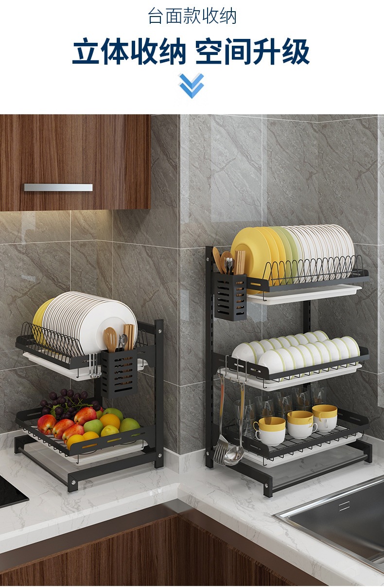 공장 직접 블랙 스테인레스 스틸 주방 접시 랙 요리 젓가락 칼 도마 도마 보관 랙스토어 가기