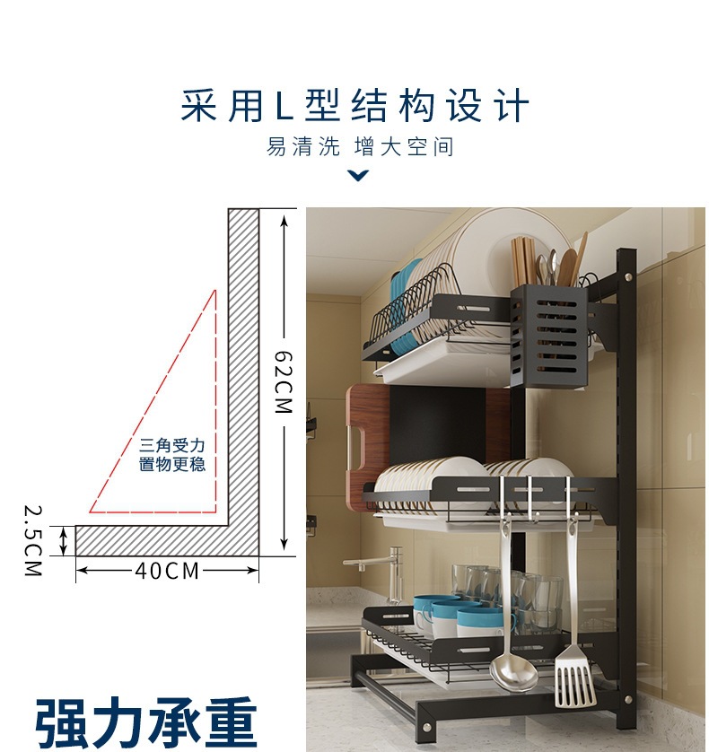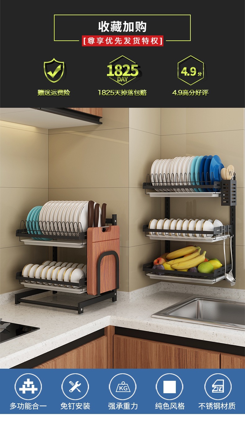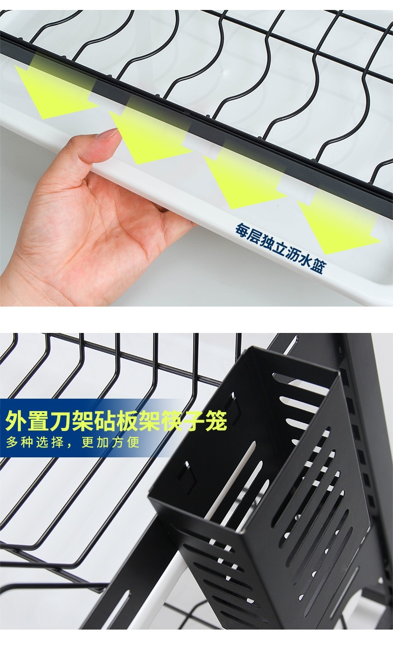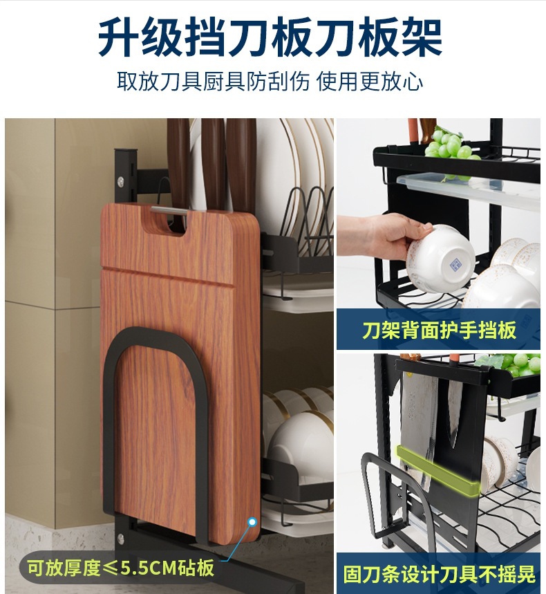 공장 직접 블랙 스테인레스 스틸 주방 접시 랙 요리 젓가락 칼 도마 도마 보관 랙
