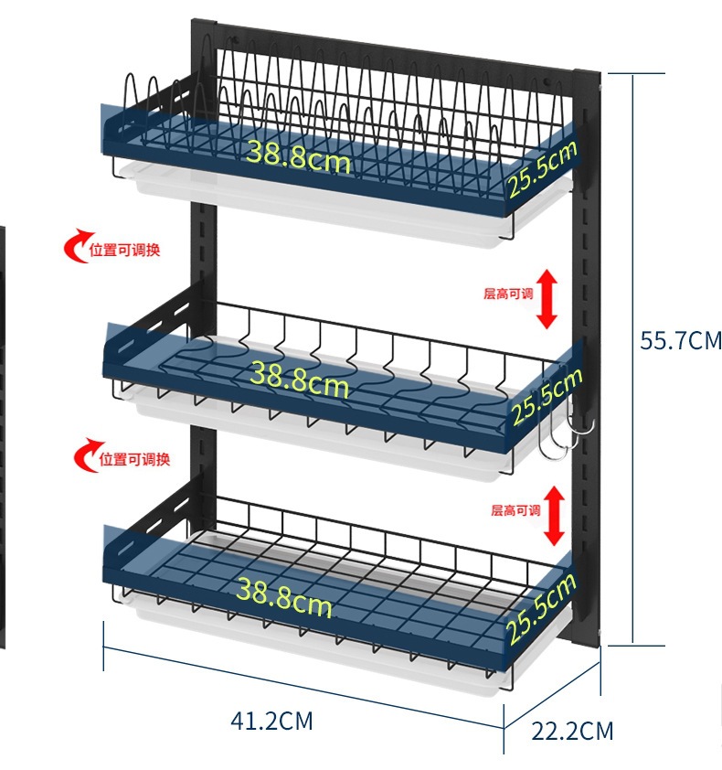 • 벽걸이 형 3 층 접시 랙 커터 랙