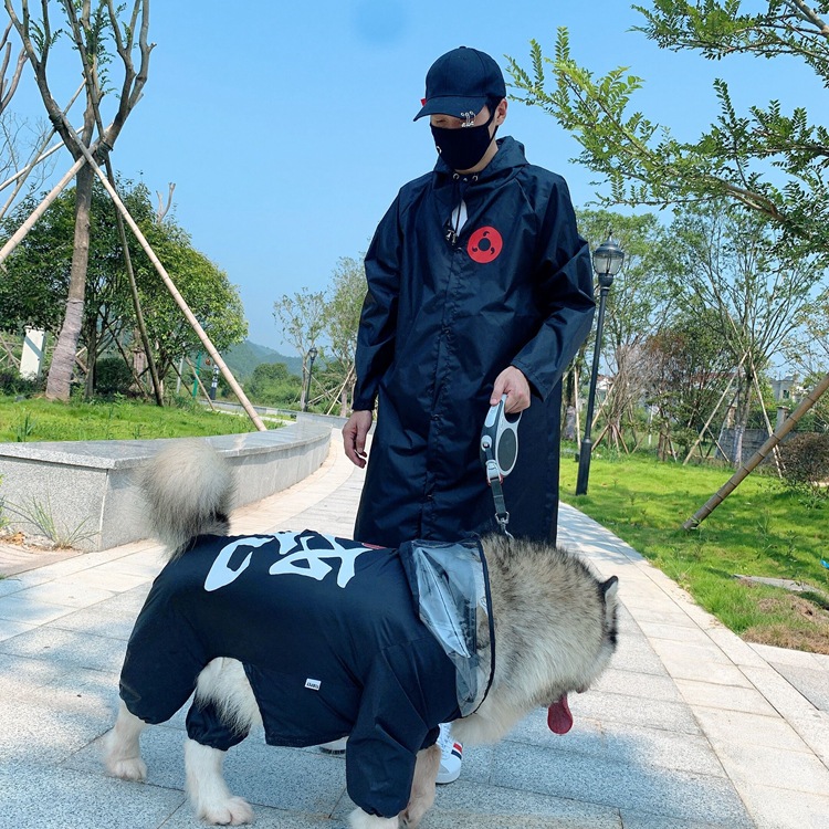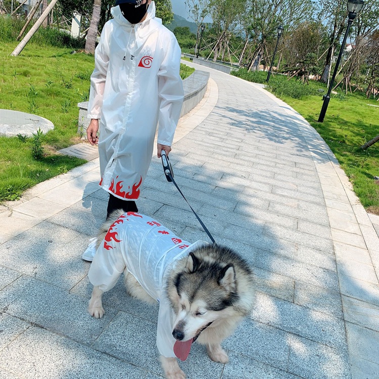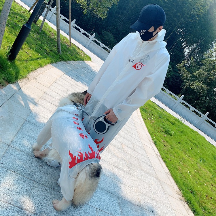 TLB 애완 동물 부모-자식 애니메이션 개 옷 테디 투우 골든 리트리버 아라스모 경량 방수 야외 코트 비옷