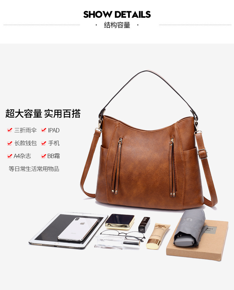 유럽과 미국의 레트로 스타일 2025년 크로스보더 인기 토트백, 더블 지퍼와 태슬 장식 여성용 핸드백 겸 숄더백, 아마존 공급스토어 가기