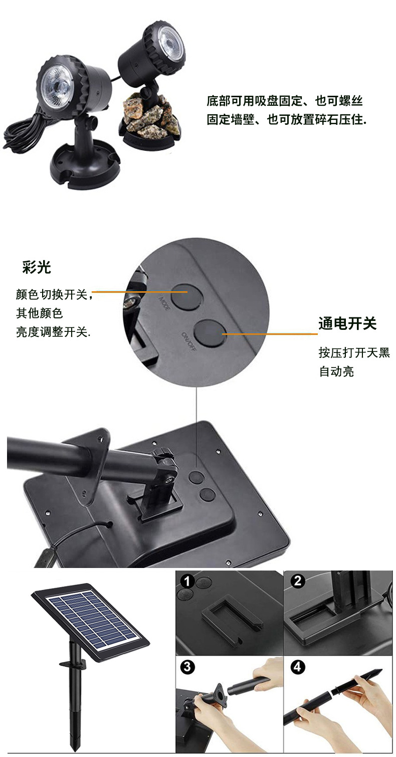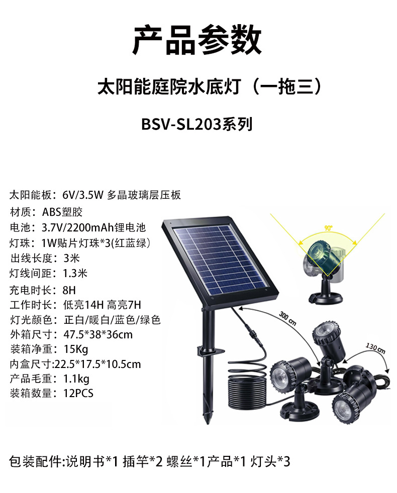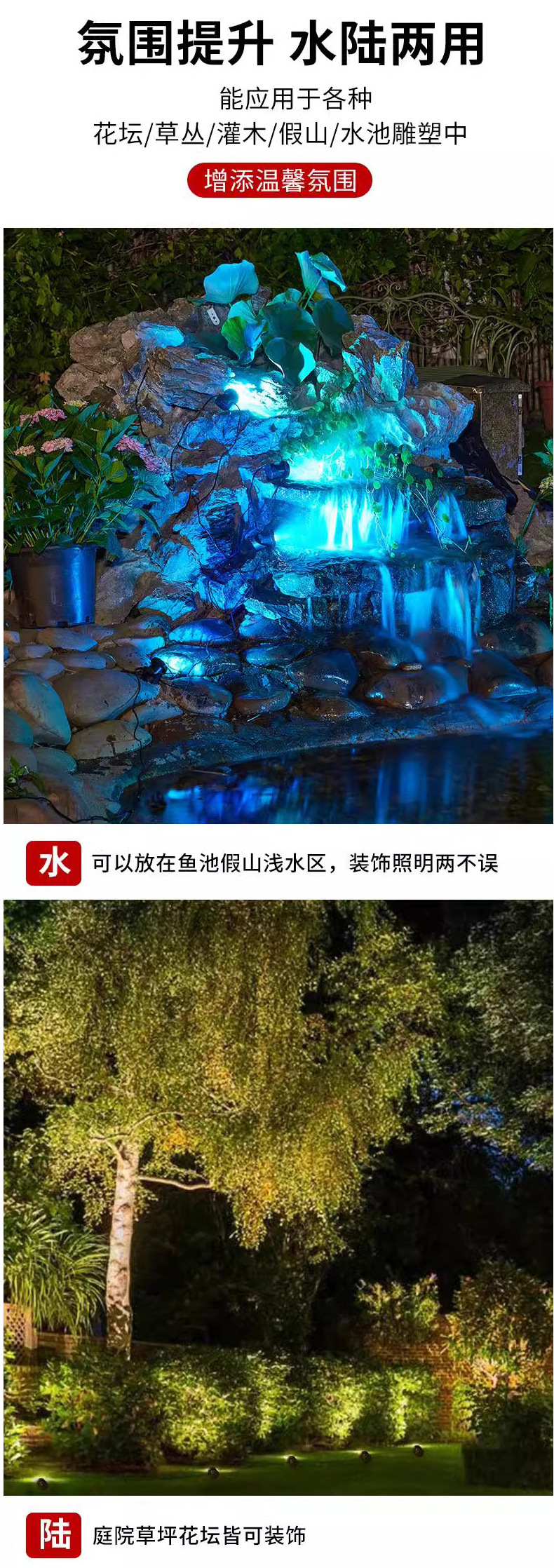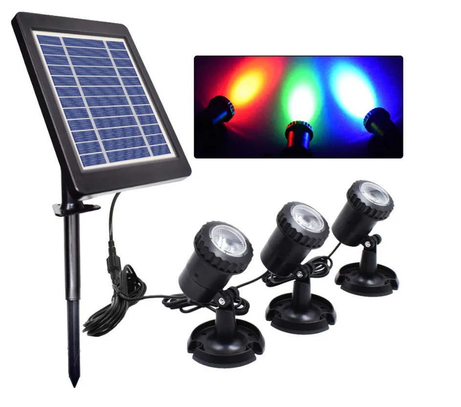 국경을 넘는 태양광 수영장 조명 IP68 3등 컬러 조명 조경 조명 정원 안뜰 잔디 조명 흡착판 수중 스포트라이트