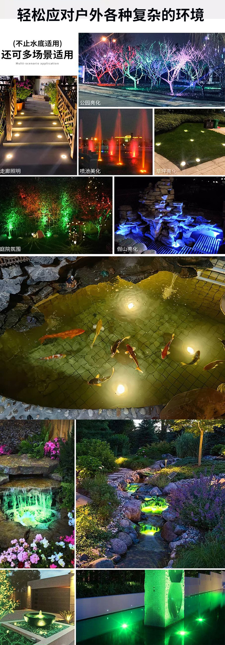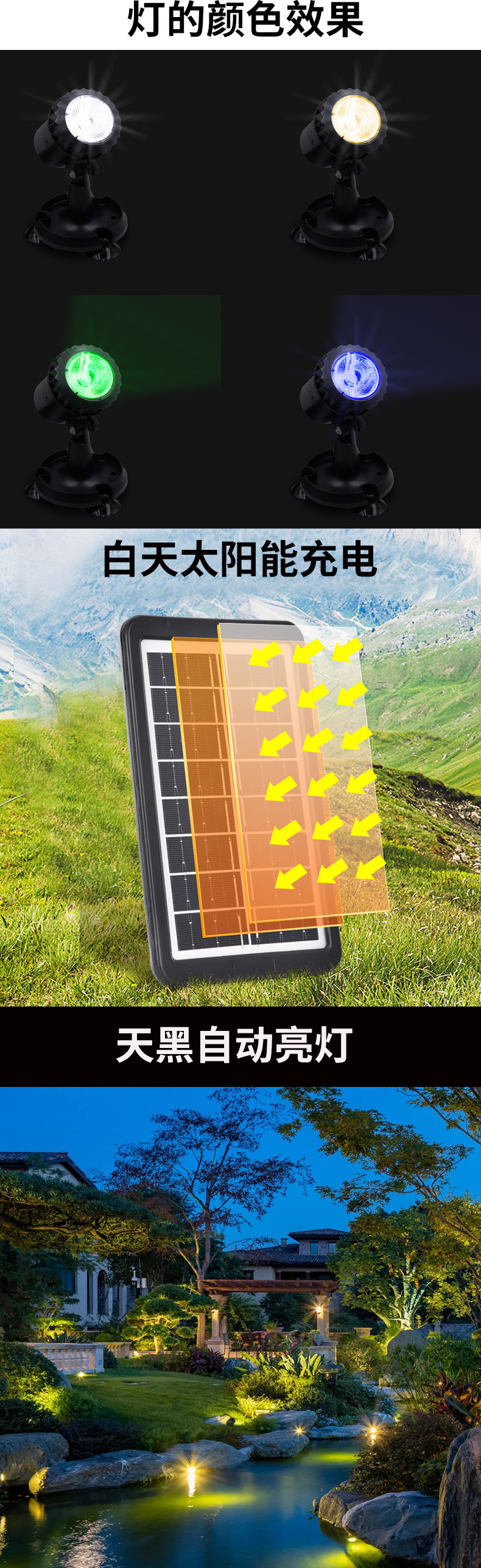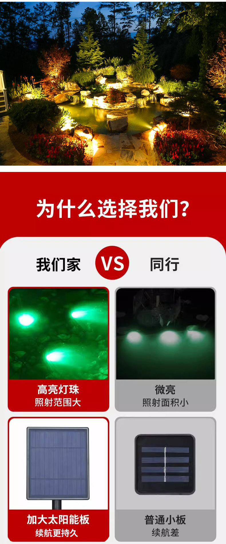 국경을 넘는 태양광 수영장 조명 IP68 3등 컬러 조명 조경 조명 정원 안뜰 잔디 조명 흡착판 수중 스포트라이트