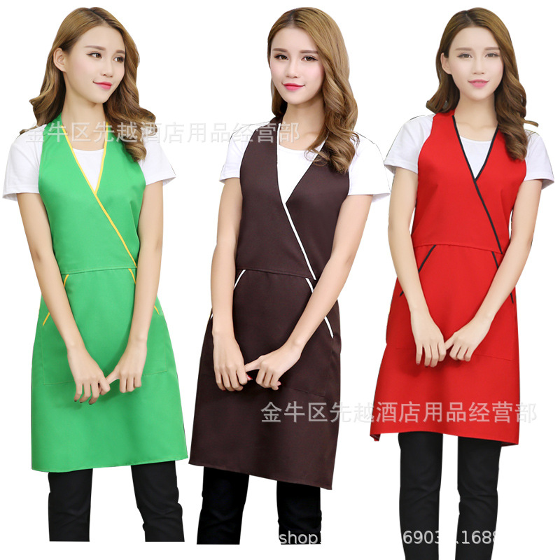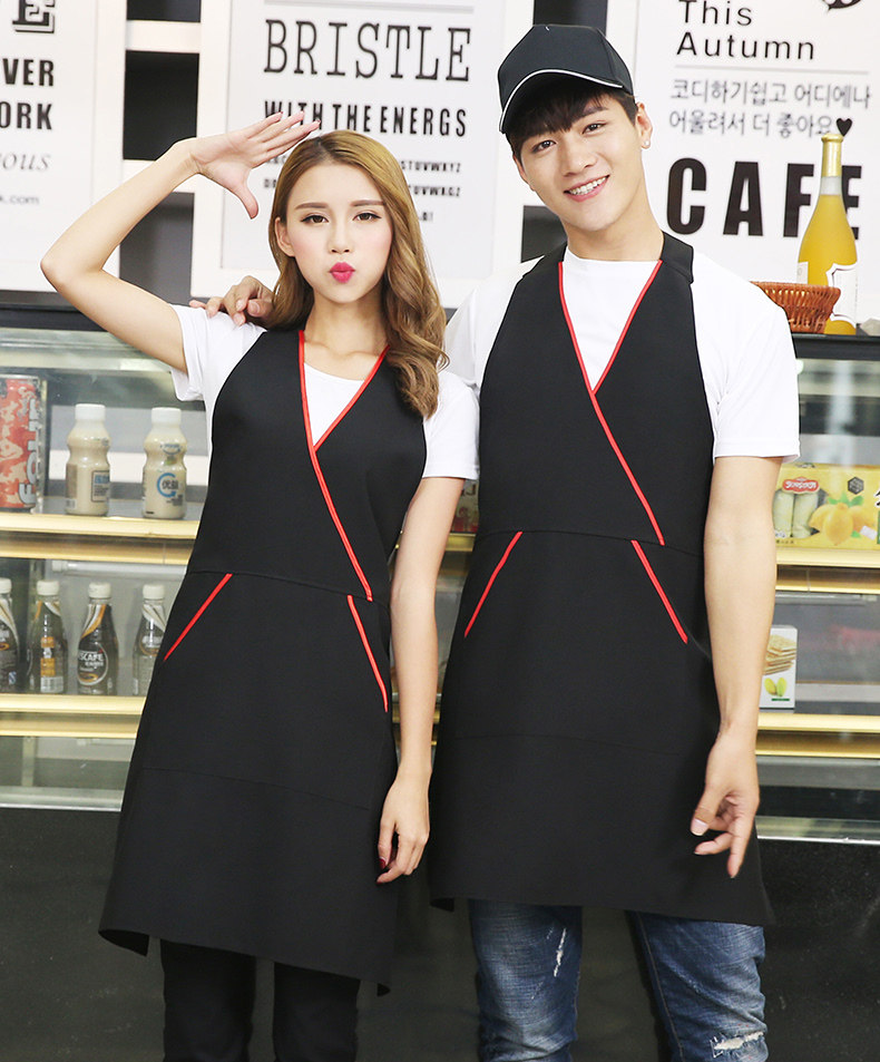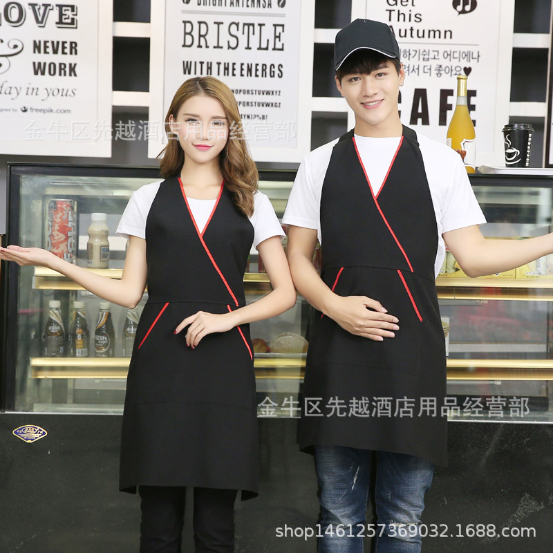한국판 가장자리 앞치마 커스텀 로고 밀크 티 숍 네일 살롱 미용실 카페 케이크 숍 작업복 허리