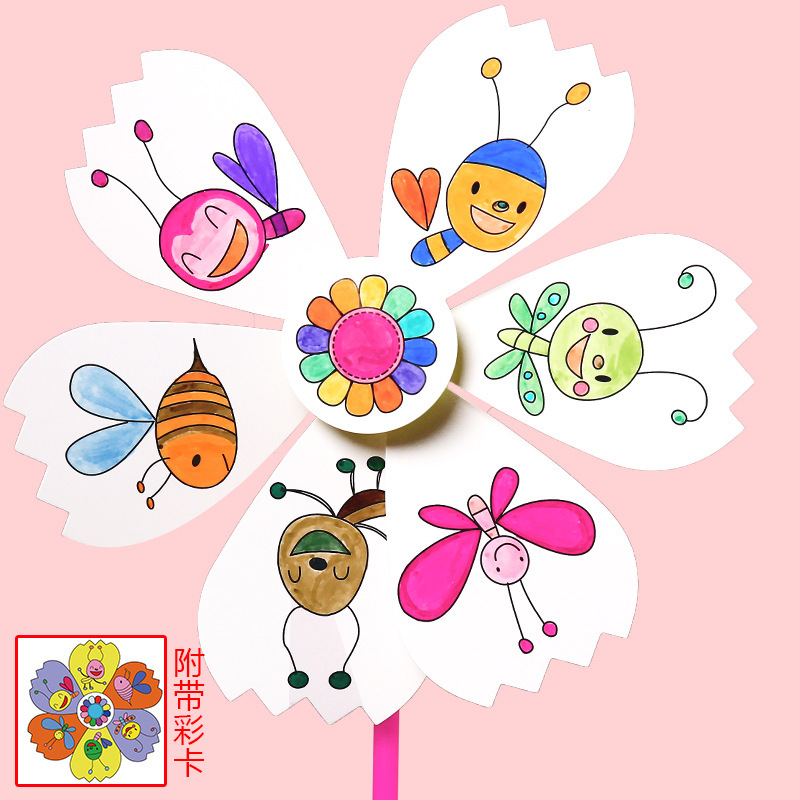어린이 창조적 인 그림 낙서 풍차 만화 교육 선물 유치원 수제 DIY 귀여운 종이 풍차