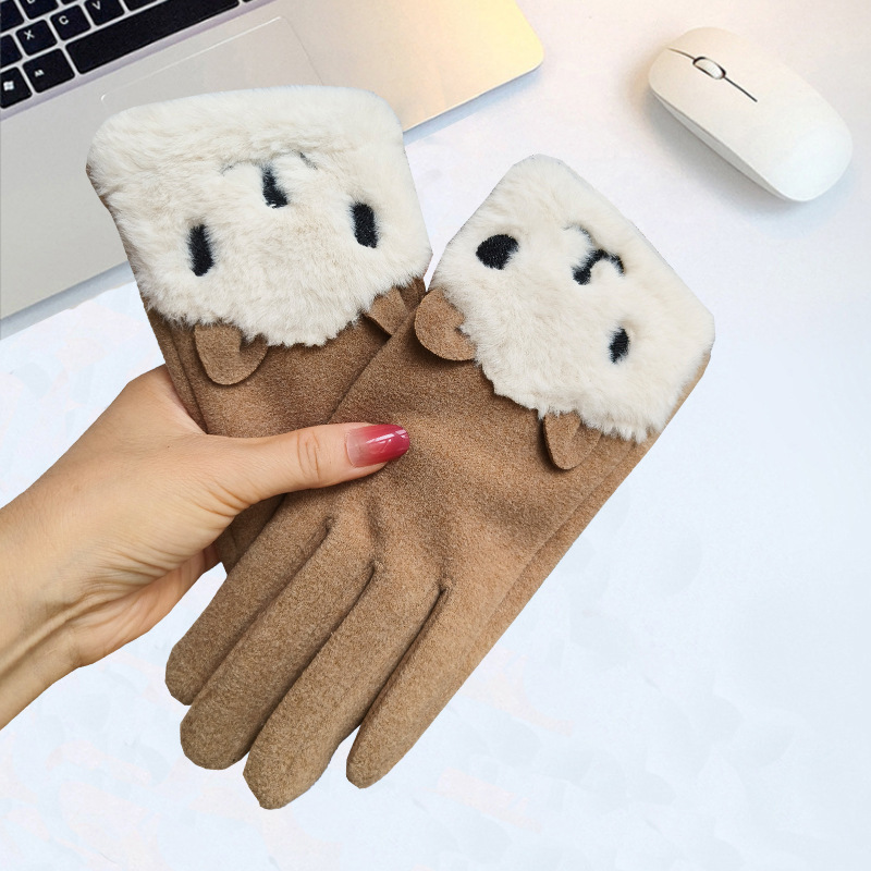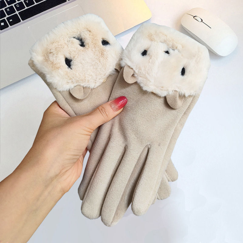 여성용 겨울 장갑, 터치스크린 가능, 다섯 손가락, 플러스 벨벳 안감, 보온, 야외 사이클링 스포츠, 토끼 귀, 한국 스타일, 학생용스토어 가기