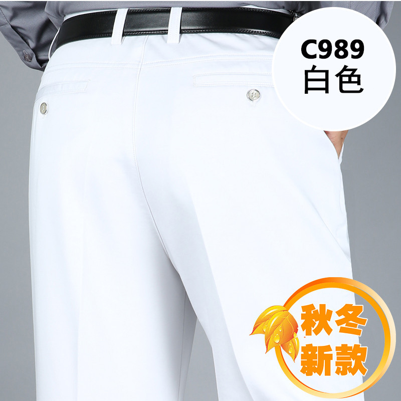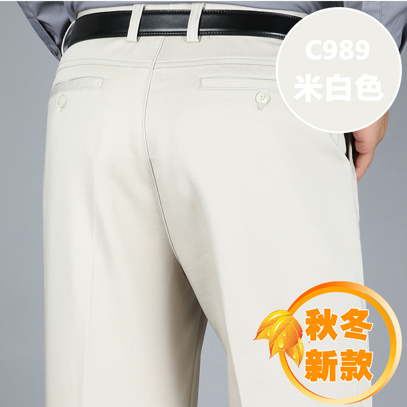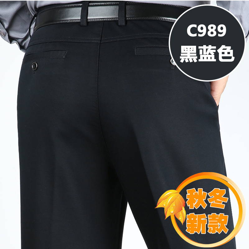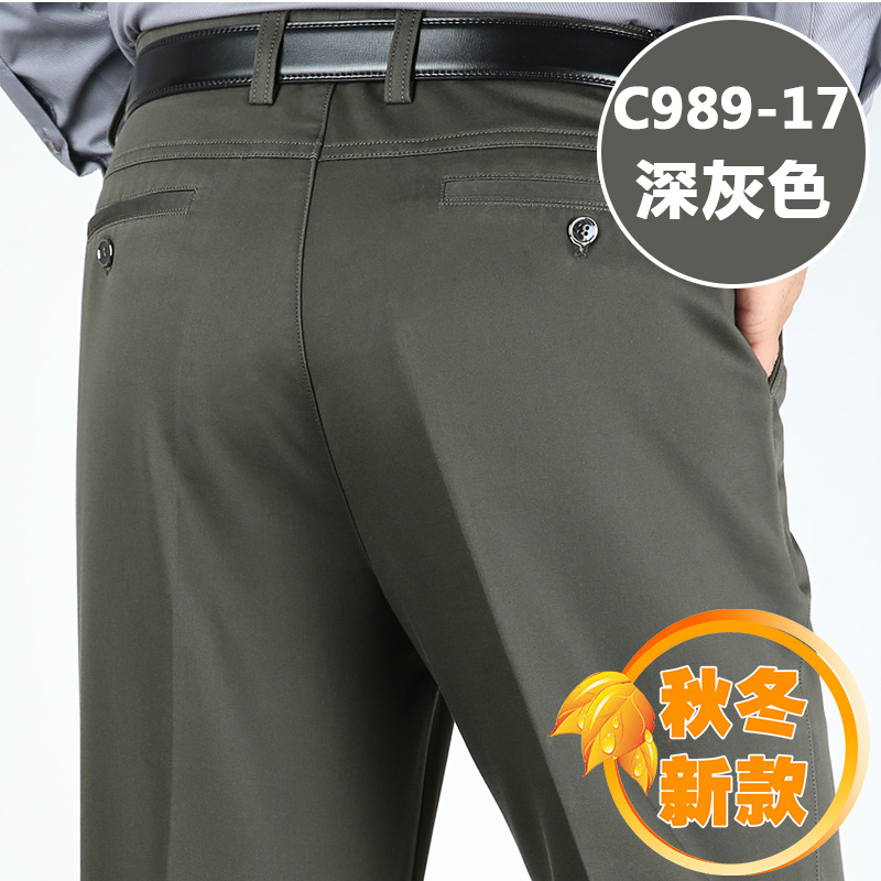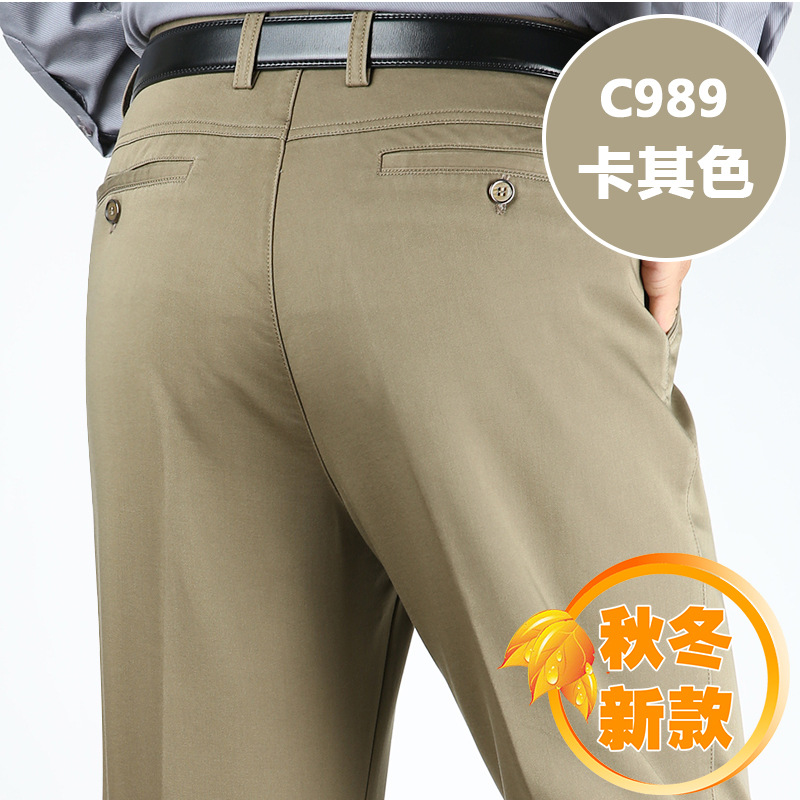 Perki 캥거루 가을과 겨울 두꺼운 중년 남성 비즈니스 캐주얼 바지 스트레이트 중년 하이 웨이스트 탄성 비 다림질스토어 가기