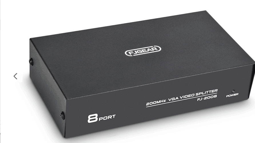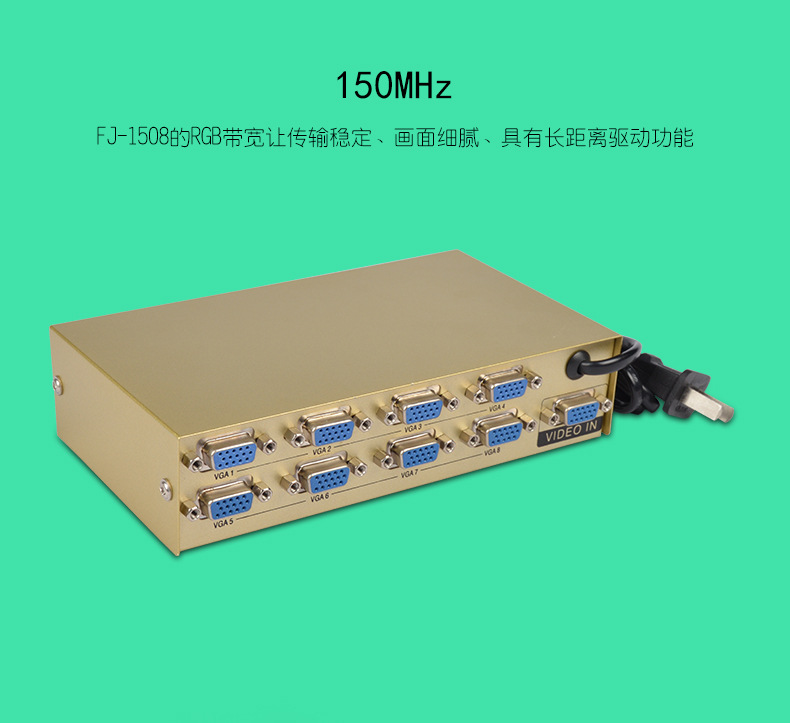 全新丰杰FJ-1508,VGA分配器, 1台主机带8台显示器 Ø 适用于具有HD-SUB15视频连接插痤的电脑(DOS/V电脑、IBM-PC兼容机) Ø 输入电平:0.5-1Vp-p Ø 输入阻抗:75欧 Ø 输出电平:0.5-1Vp-p Ø 输出阻抗:75欧 Ø 行场同步通道:输入电平0.5-1Vp-p Ø 输出电平兼容:TTL Ø 支持分辩率:1600X1280 Ø 电源: AC 220V Ø 功率:5W |