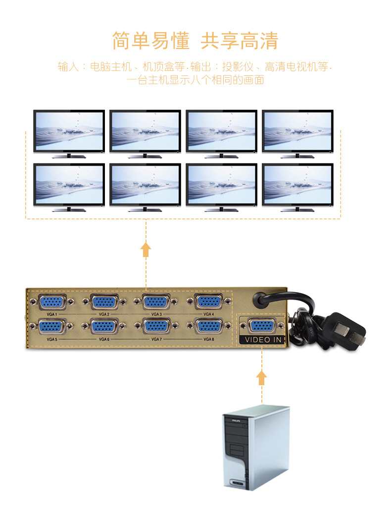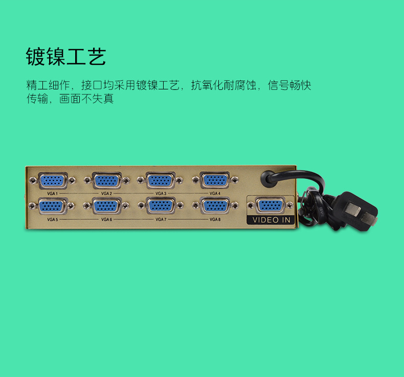 VGA分配器批发8路VGA分配器VGA分配器一分八 VGA分配器是将计算机或其它VGA输出信号分配至多个VGA显示设备或投影显示系统上的一种控制设备。它是专门分配VGA信号和转换信号的接口形式的设备。 该产品广泛应用于高清晰多媒体电脑演示,大屏幕投影视频会议,远程多媒体教育、教程,控制多媒体电脑演示 |
