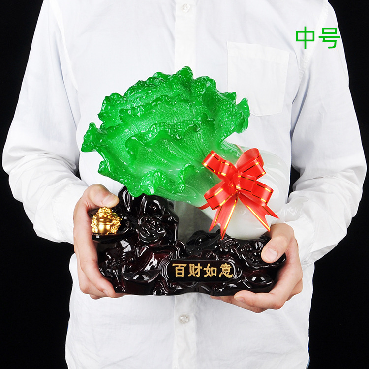 【产品名称】:创意款树脂家居摆件金蟾百财如意玉白菜家居饰品仿木仿玉石摆件