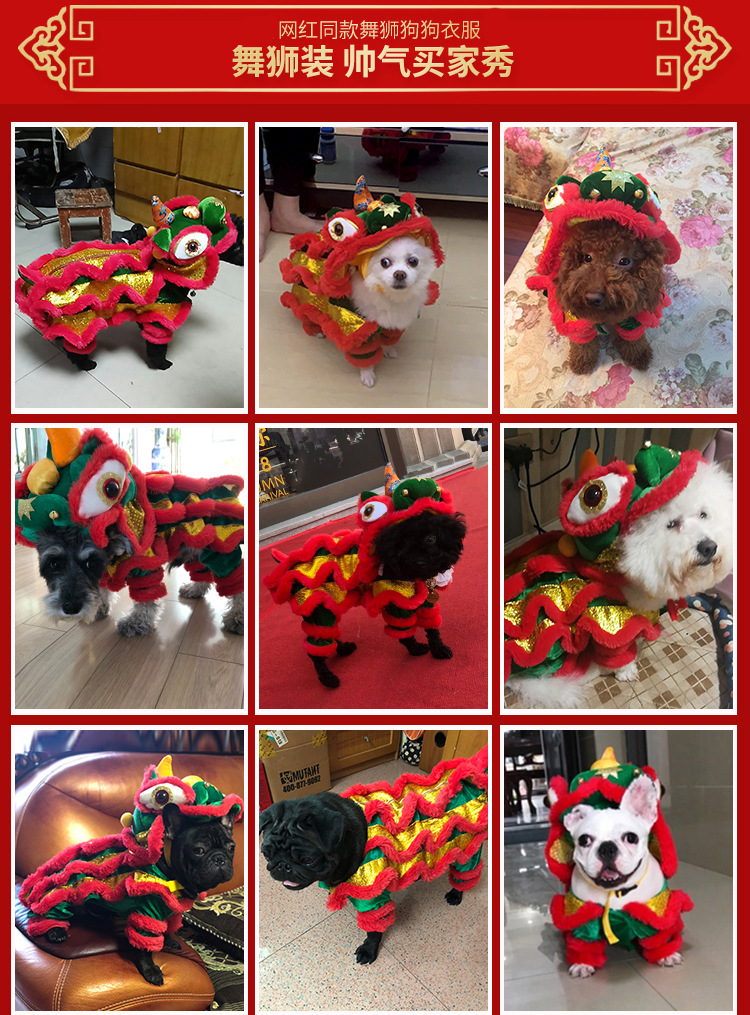 사자 댄스 개 옷 애완 동물 재미 사자 fadou 변신 원피스 테디 팬더 고양이 새해 축하 새해 원피스스토어 가기
