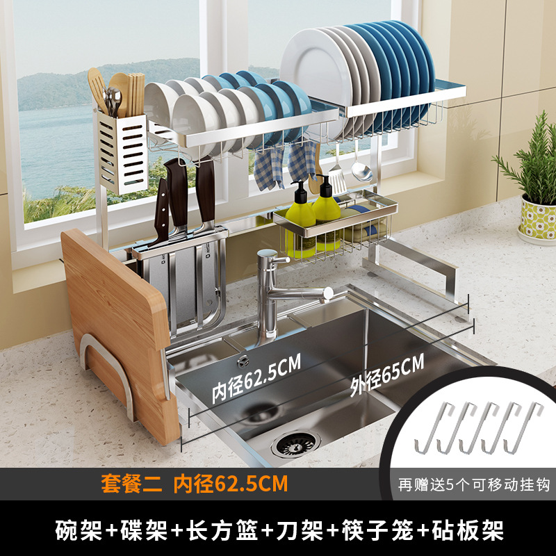 304 스테인레스 스틸 두꺼운 물 싱크 배수 더블 싱크 접시 건조 그릇 보관 랙 더블 레이어 주방 칼 보관 랙