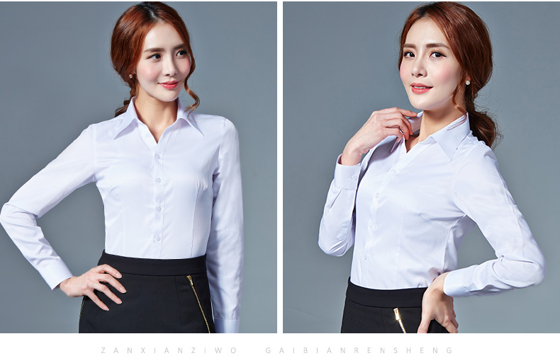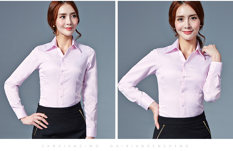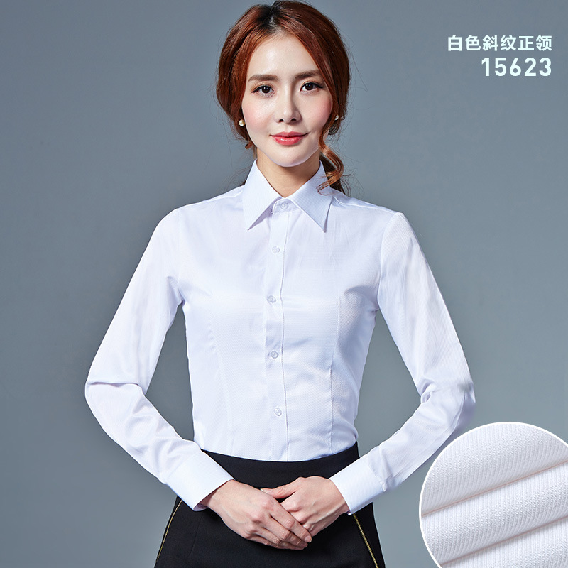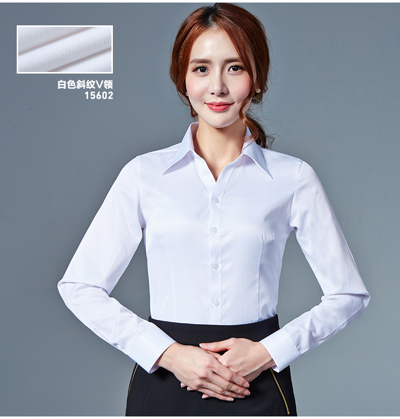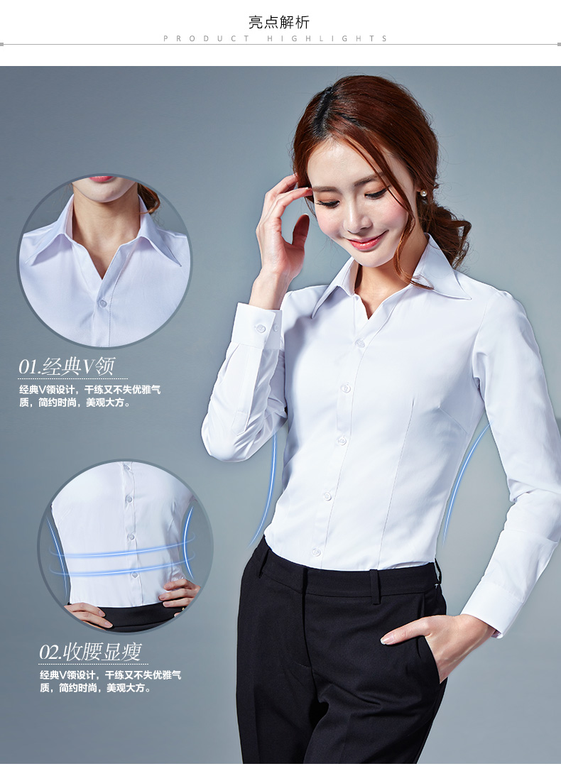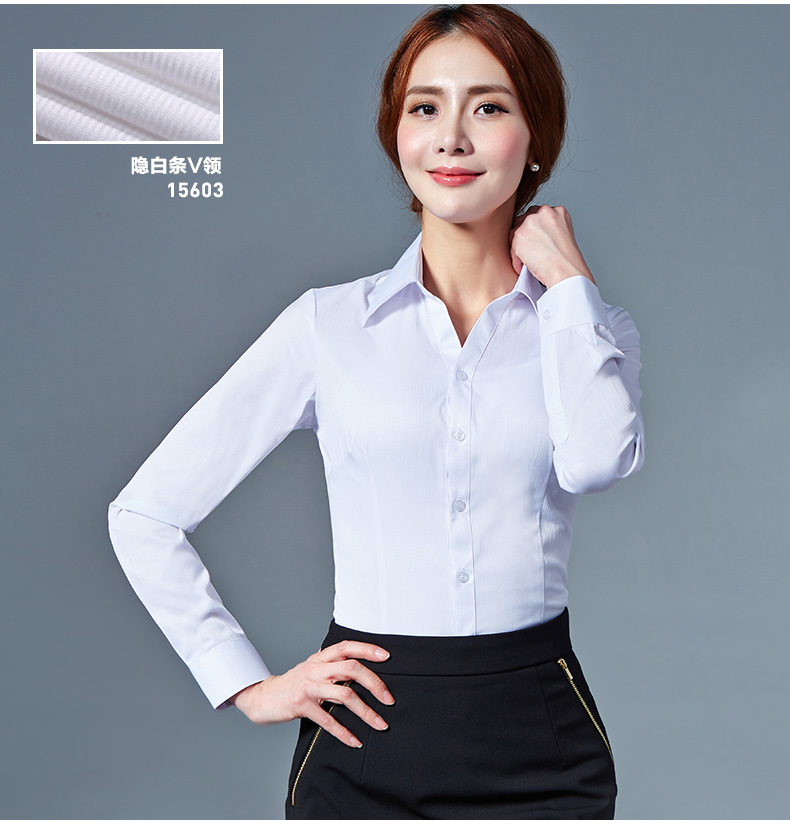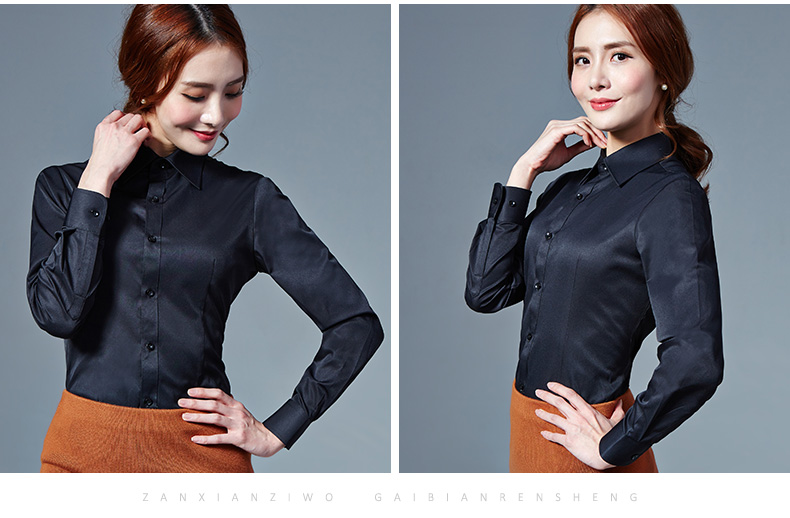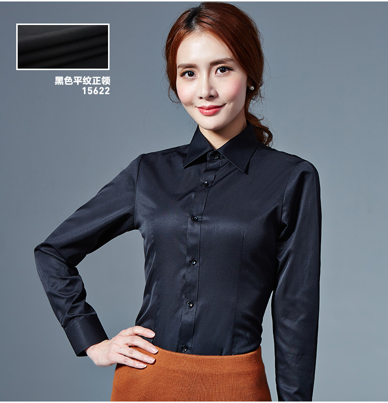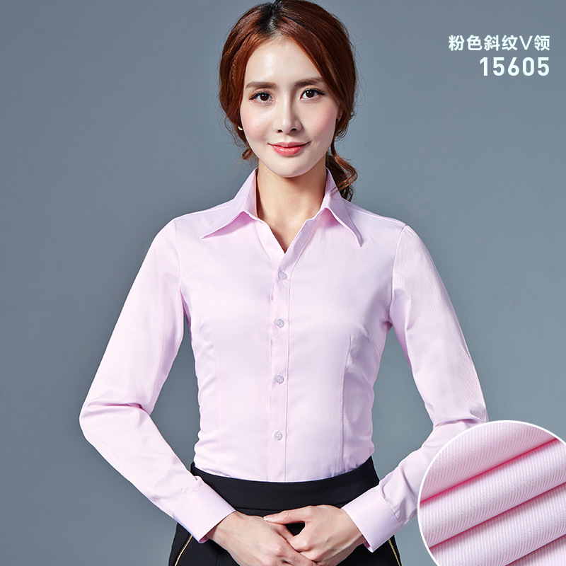 가을 긴 소매 셔츠 여성의 전문 작업 원피스 슬림 V-넥 OL 통근 순수 블루 셔츠 여성 기본 셔츠 작업복스토어 가기