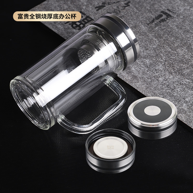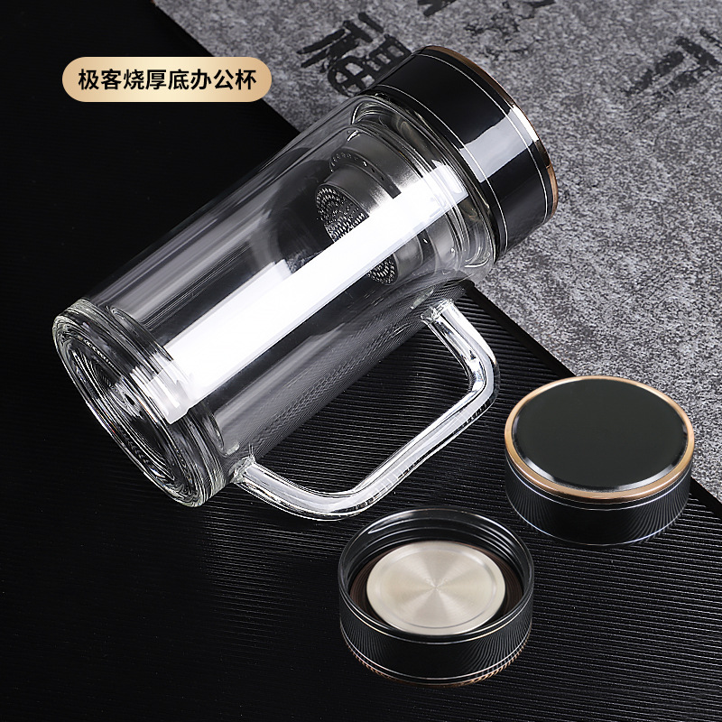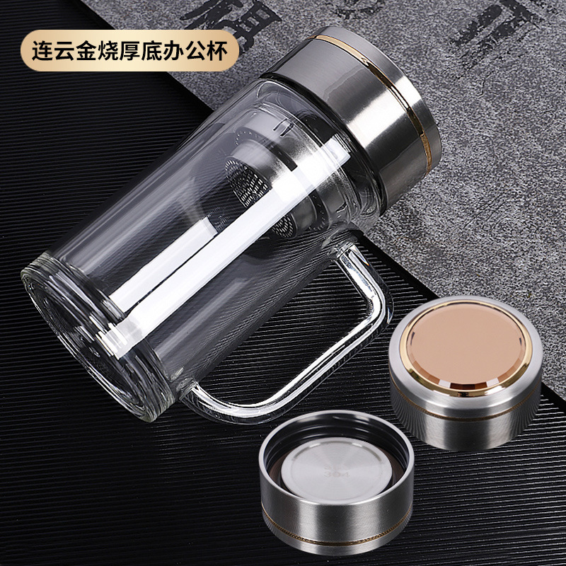 더블 레이어 유리 핸들 맞춤형 로고 고온 도매 티 컵 오피스 컵 광고 선물 컵 인쇄