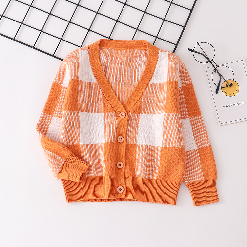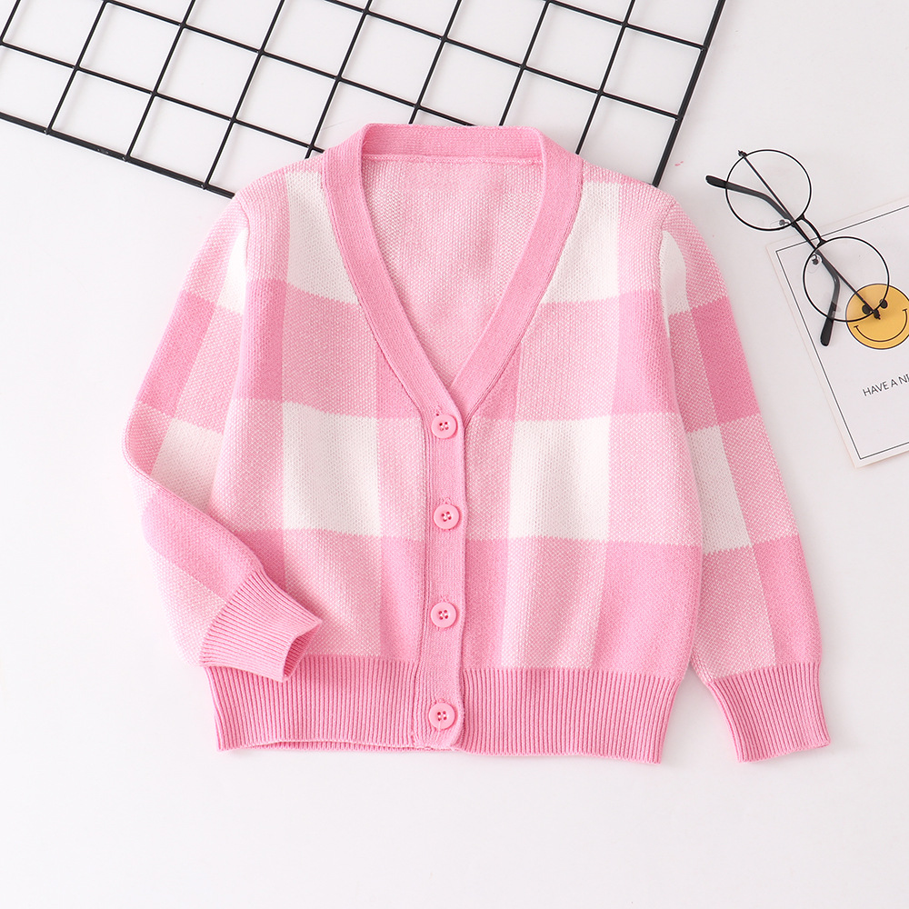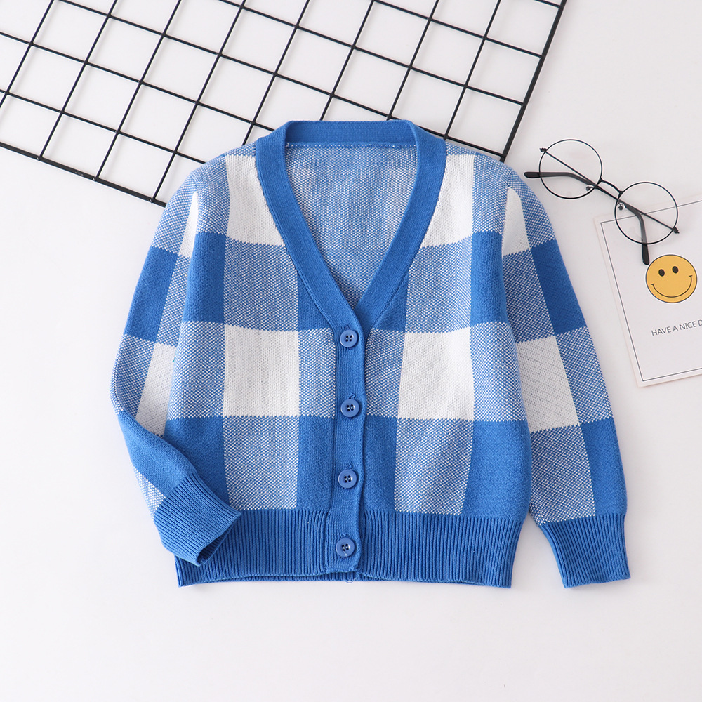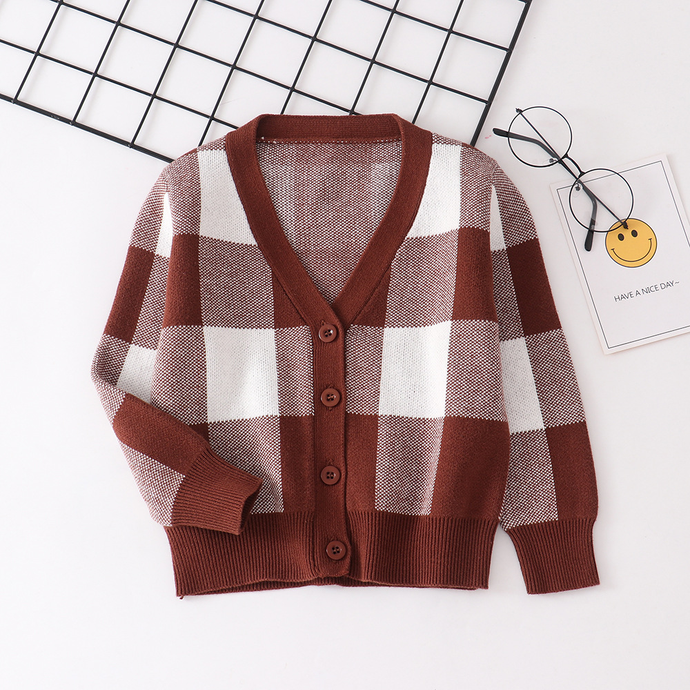 새로운 니트 소년 소녀 니트 스웨터 가디건 어린이 V 넥 격자 무늬 코트 울 어린이 스웨터 공장 콘센트