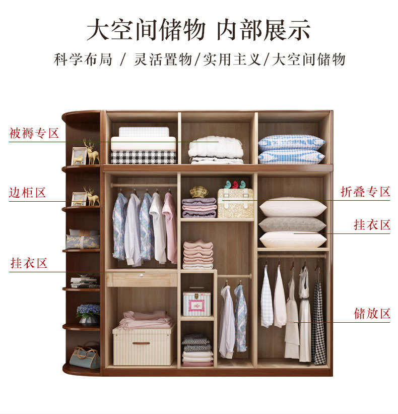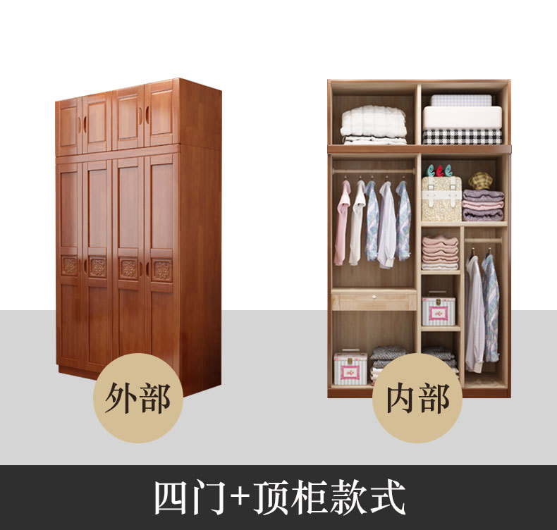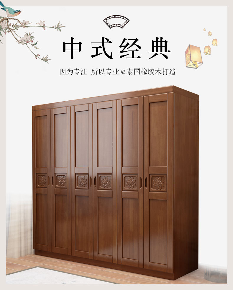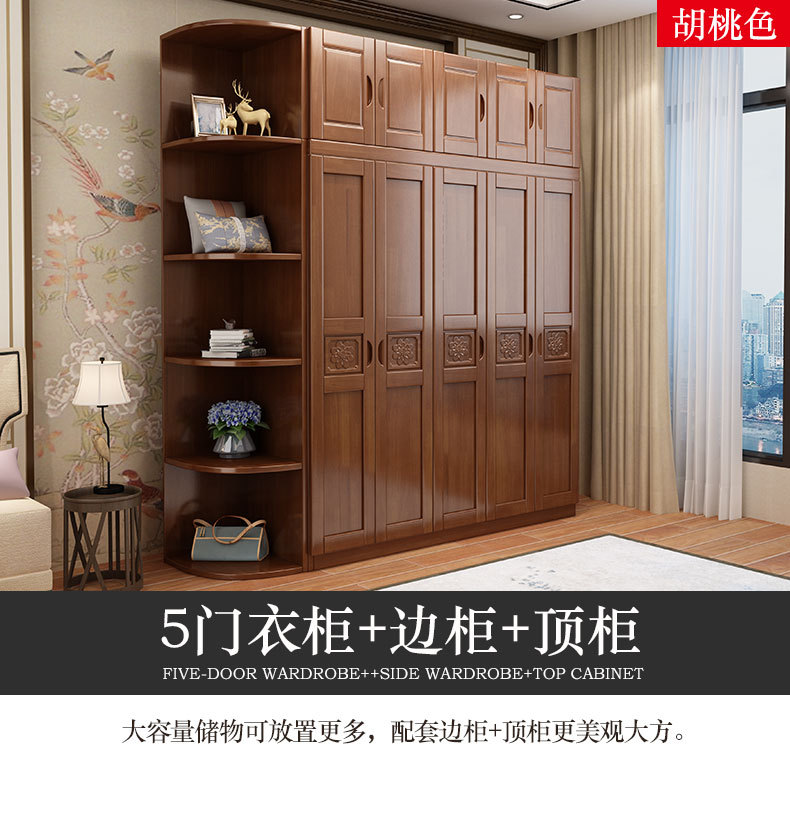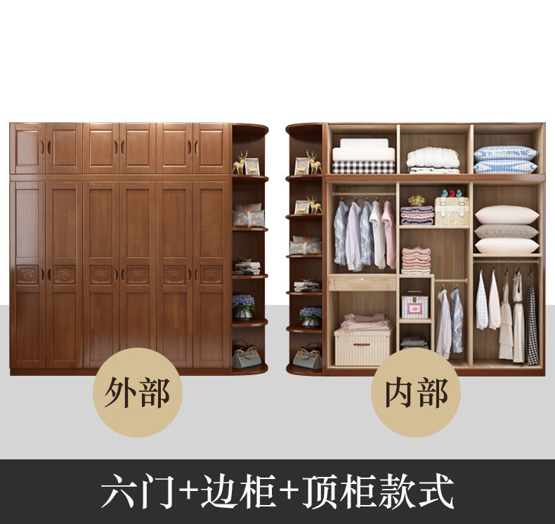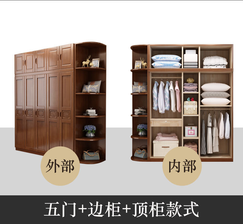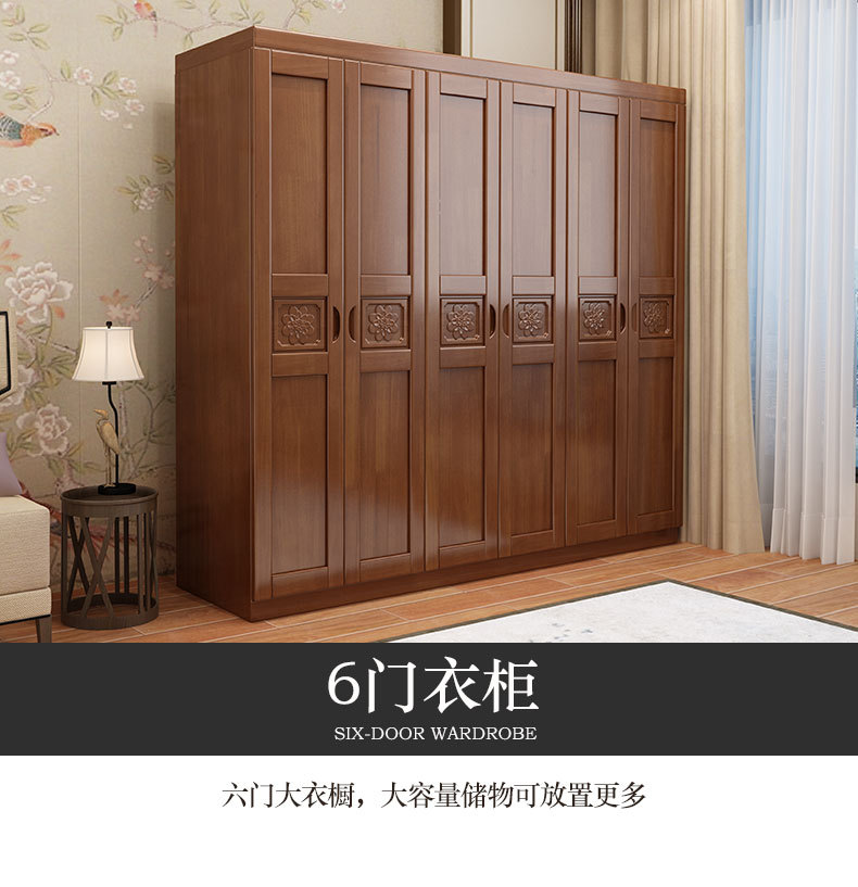 단단한 나무 옷장 중국 고무 나무 침실 옷장 5 문 6 문 스윙 문 침실 가구 보관 옷장 도매