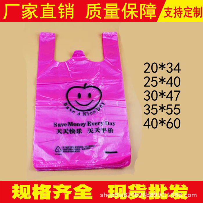 핑크 웃는 얼굴 비닐 봉투 빨간 조끼 가방 휴일 슈퍼마켓 쇼핑 가방 선물 조끼 토트 가방 도매 맞춤스토어 가기