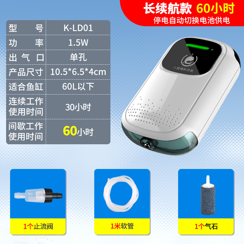 • 바이칼 K-LD01 에어로틱 싱글 홀 리튬 배터리 산소 펌프 (2600) 패키지 1 m 파이프 + 1 가스 스톤 + 1 스톱 밸브