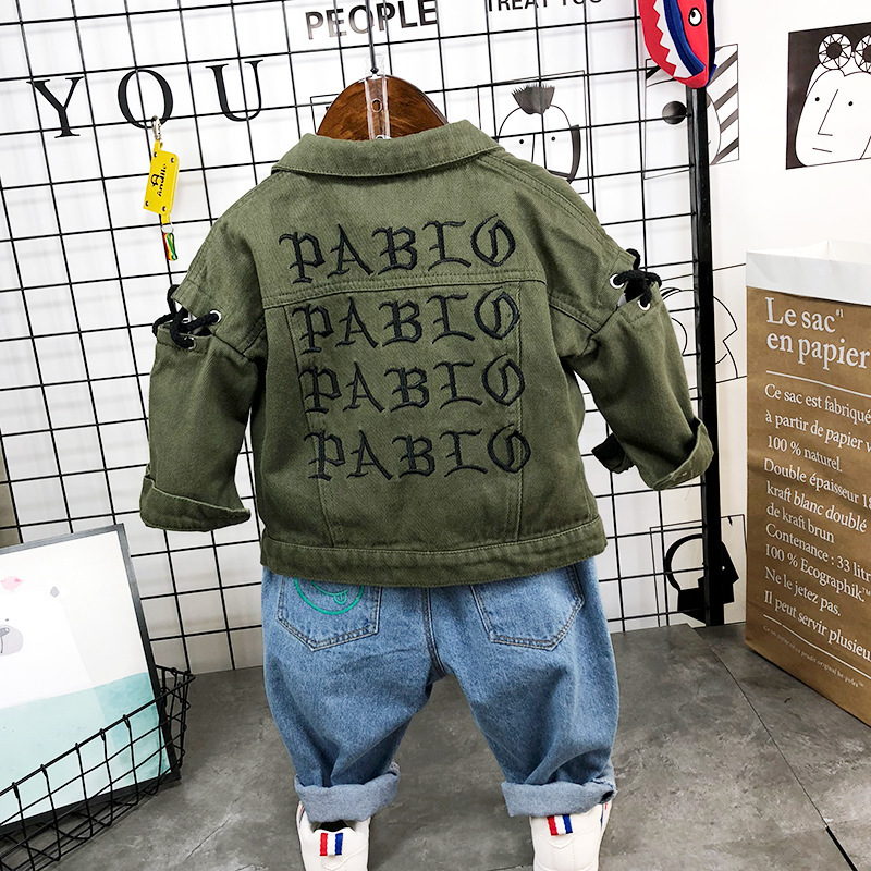 소년 봄과 가을 세트 자수 데님 코트 어린이 한국 단색 아동복 가을 3 피스 세트 머리스토어 가기