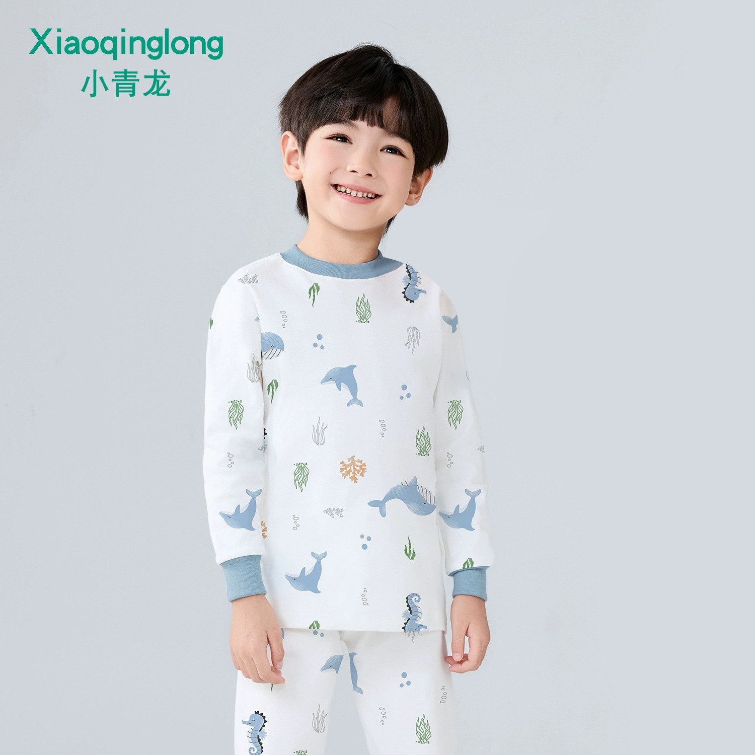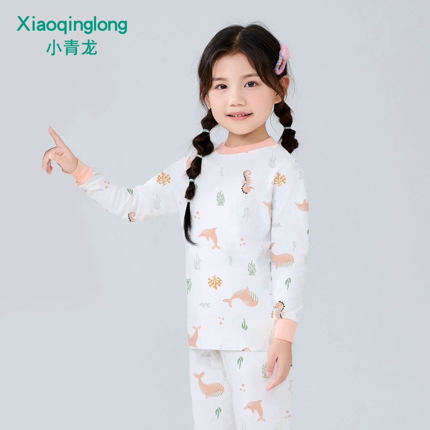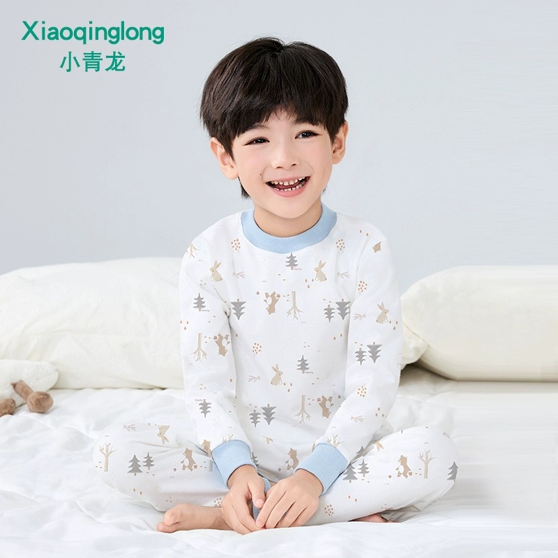 Xiaoqinglong 순수 면화 어린이 속옷 중간 칼라 가을 옷과 가을 바지 아기 소년 소녀 중대형 어린이 잠옷 8003 홈 가구스토어 가기