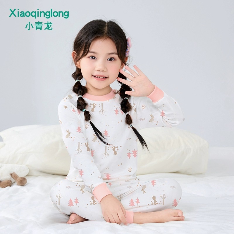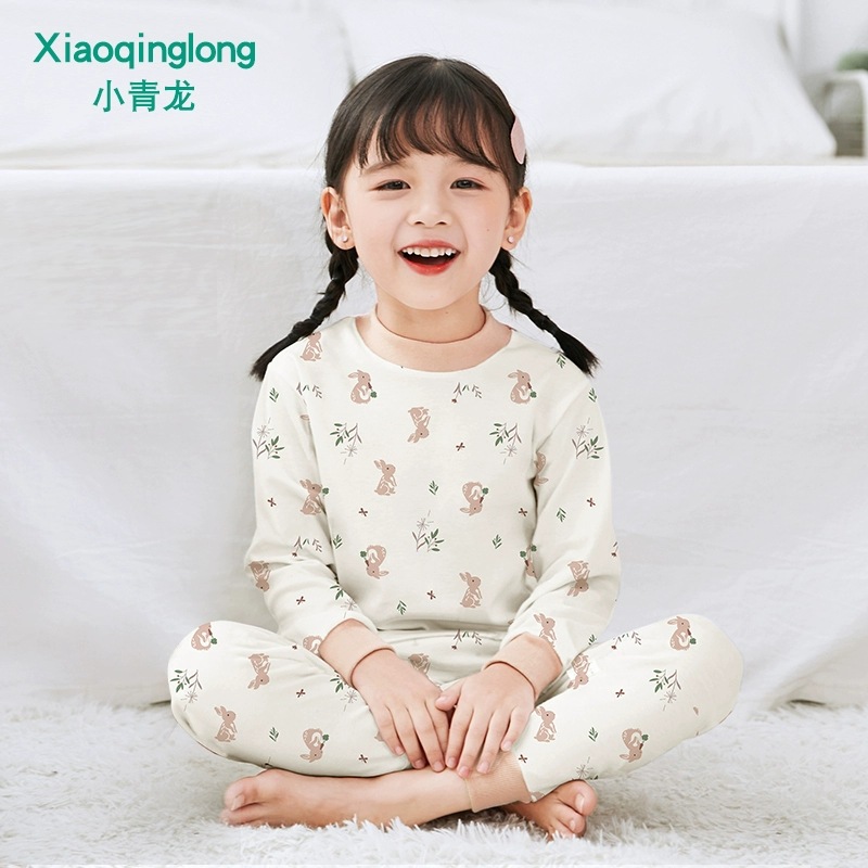 Xiaoqinglong 순수 면화 어린이 속옷 중간 칼라 가을 옷과 가을 바지 아기 소년 소녀 중대형 어린이 잠옷 8003 홈 가구