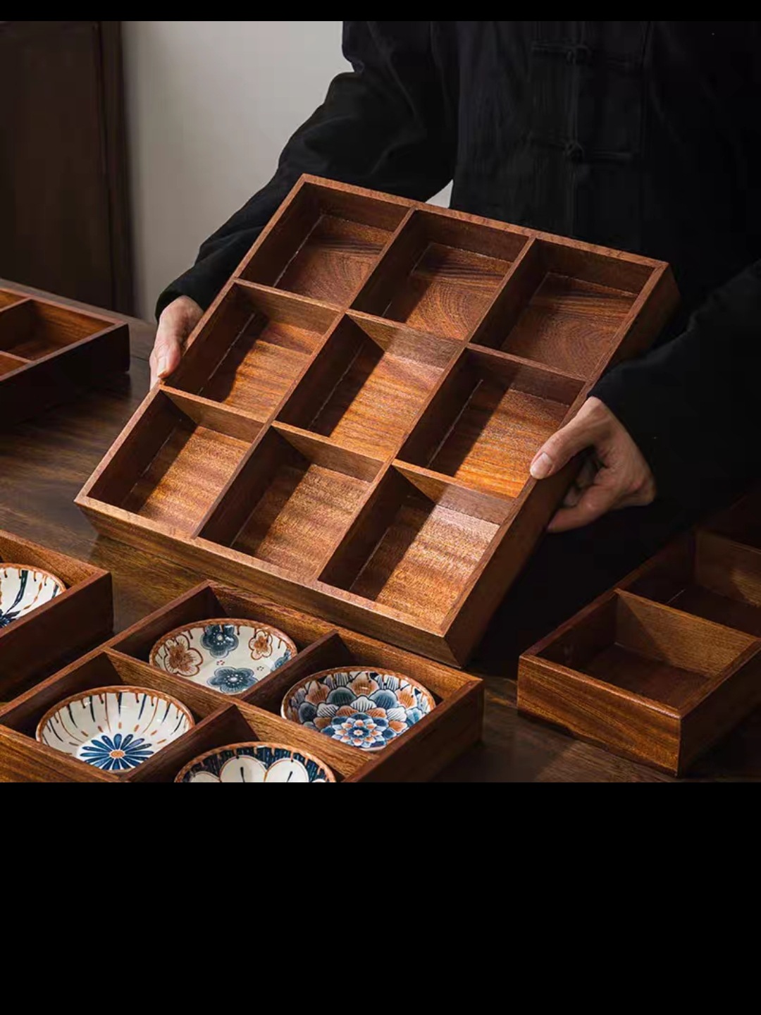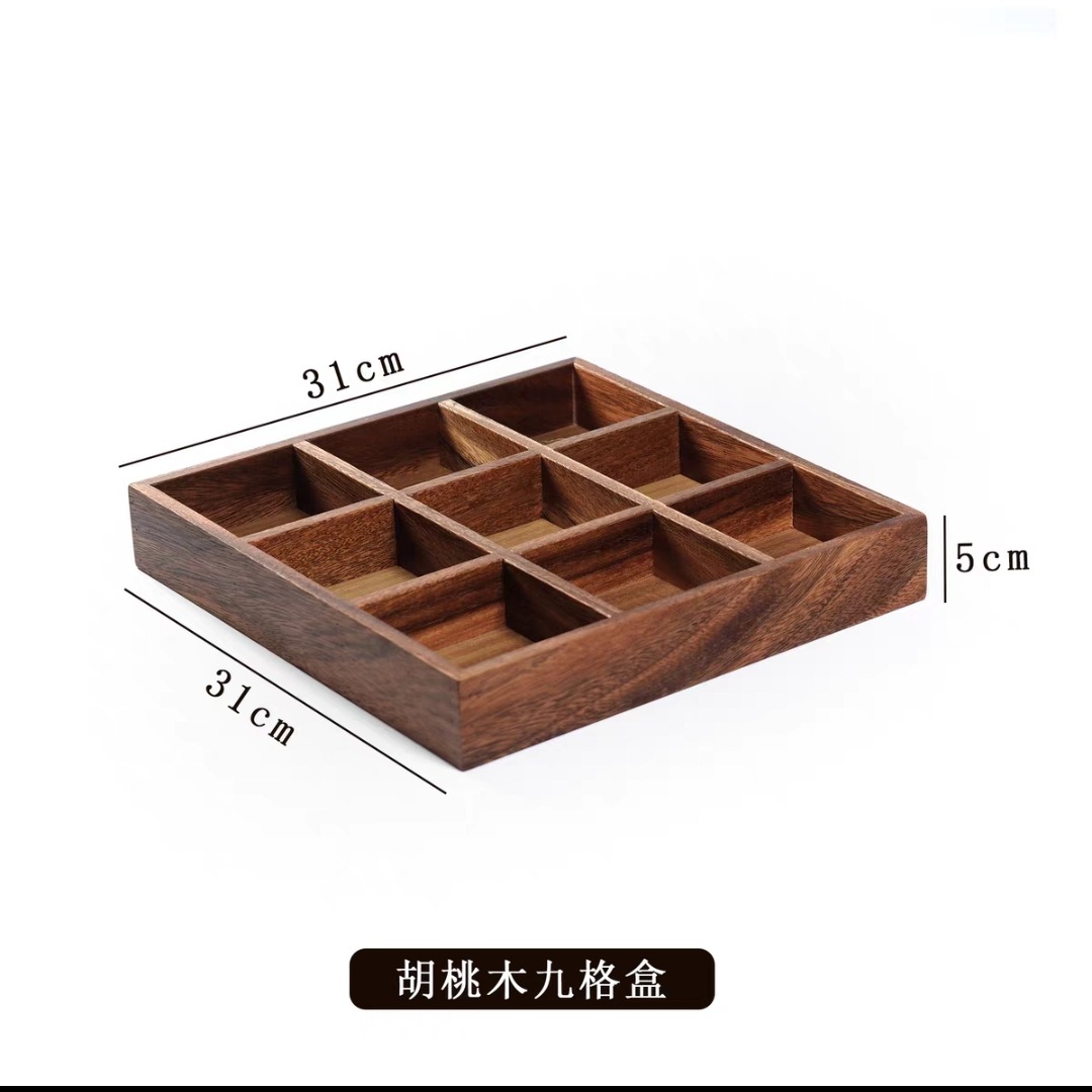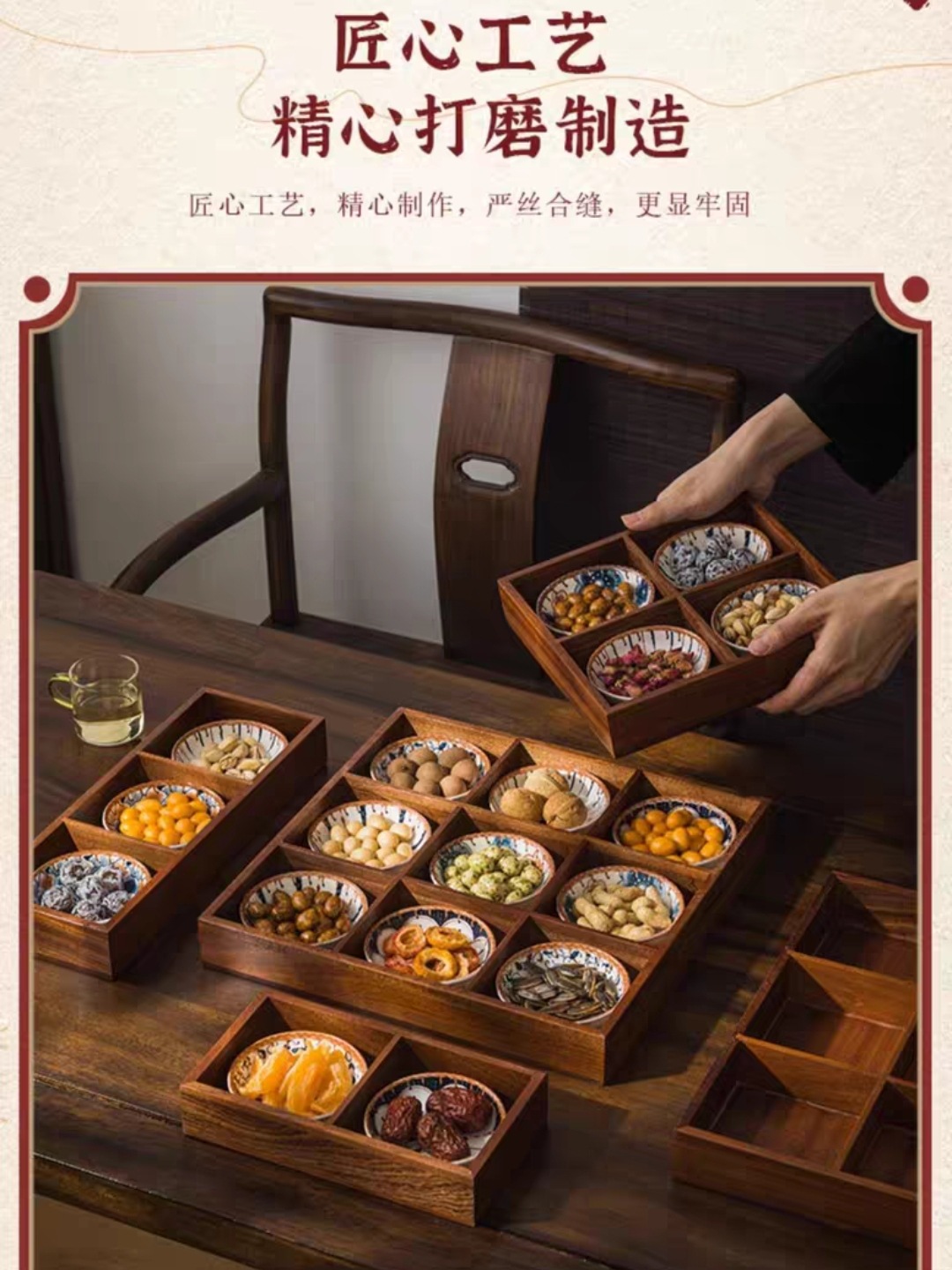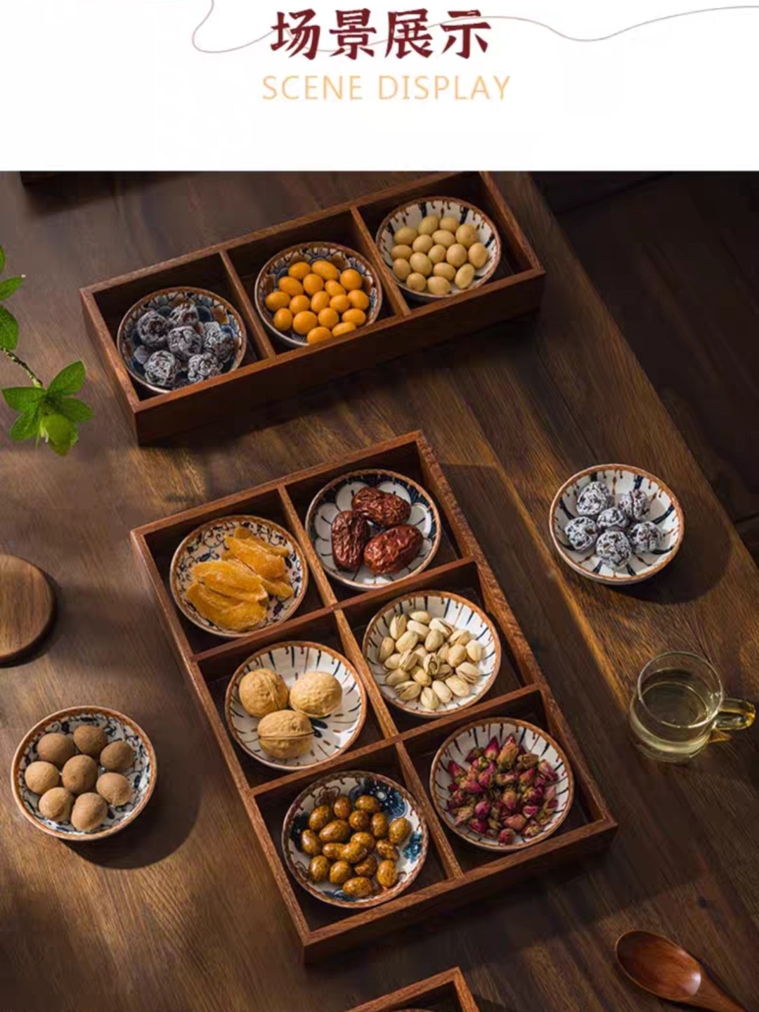 건과일 접시 간식 견과류 중국식 분할 수납함 거실 원목 9칸 가정용 건과일 상자 과일 접시